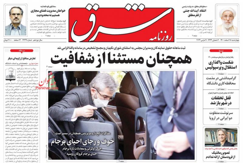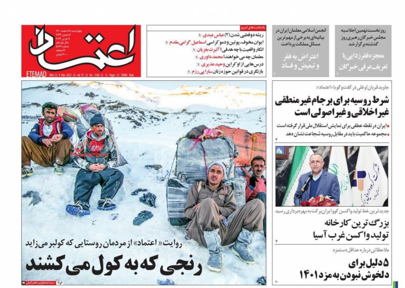 رویداد ایران > رسانه > روزنامه > صفحه نخست روزنامه‌های امروز پنجشنبه 19 اسفند 1400