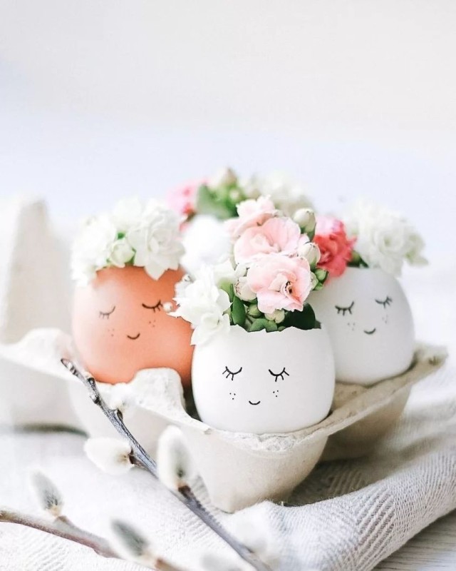 برای این کار میتوانید یک تصویر عروسکی زیبا روی تخم مرغ بکشید و بعد با استفاده از گل یا مقوا برای آن تاج درست کنید. میتوانید با کمک مقوا یک گوش برای دو طرف تخم مرغ طراحی کنید و آن را شبیه به یک حیوان طراحی کنید. یا کلاً طرح یک عروسک جذاب را روی تخم مرغ بکشید و یک اثر هنری خلق کنید.
