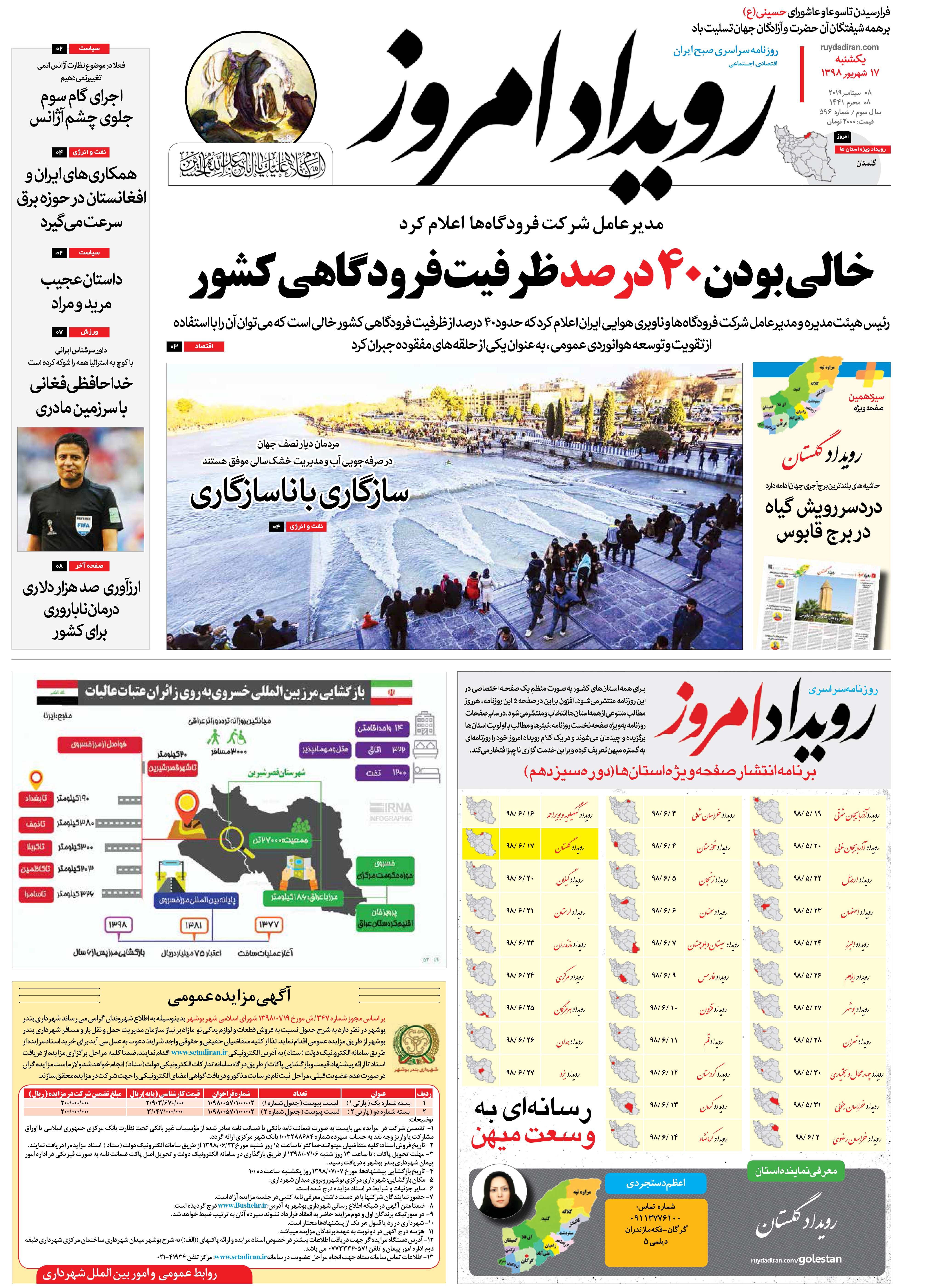 کد: 12697 | 17 شهریور 1398 ساعت 00:00 روزنامه رویداد امروز یک شنبه ۱7 شهریور ۱۳۹۸ روزنامه رویداد امروز رویداد ایران البرز اشتراک گذاری گزارش خطا × اشتراک گذاری مطلب: روزنامه رویداد امروز یک شنبه ۱7 شهریور ۱۳۹۸ فیسبوک اینستاگرام تلگرام ایکس (توییتر) ایتا بله روبیکا × گزارش خطا برای گزارش خطا با پست الکترونیکی: ruydadiran[at]gmail.com در ارتباط باشید