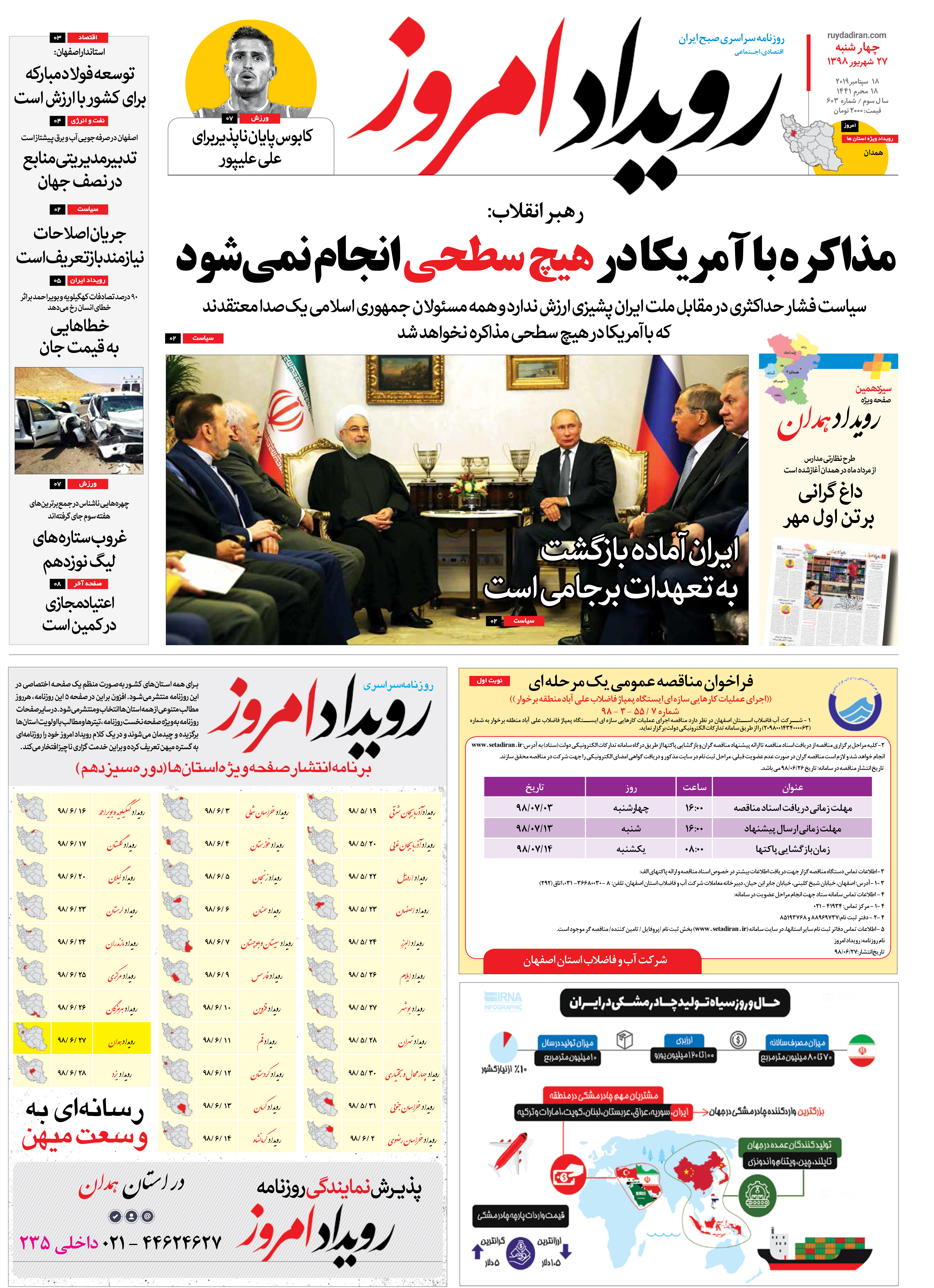 کد: 12858 | 27 شهریور 1398 ساعت 00:00 روزنامه رویداد امروز چهارشنبه ۲۷ شهریور ۱۳۹۸ روزنامه رویداد امروز رویداد ایران البرز اشتراک گذاری گزارش خطا × اشتراک گذاری مطلب: روزنامه رویداد امروز چهارشنبه ۲۷ شهریور ۱۳۹۸ فیسبوک اینستاگرام تلگرام ایکس (توییتر) ایتا بله روبیکا × گزارش خطا برای گزارش خطا با پست الکترونیکی: ruydadiran[at]gmail.com در ارتباط باشید