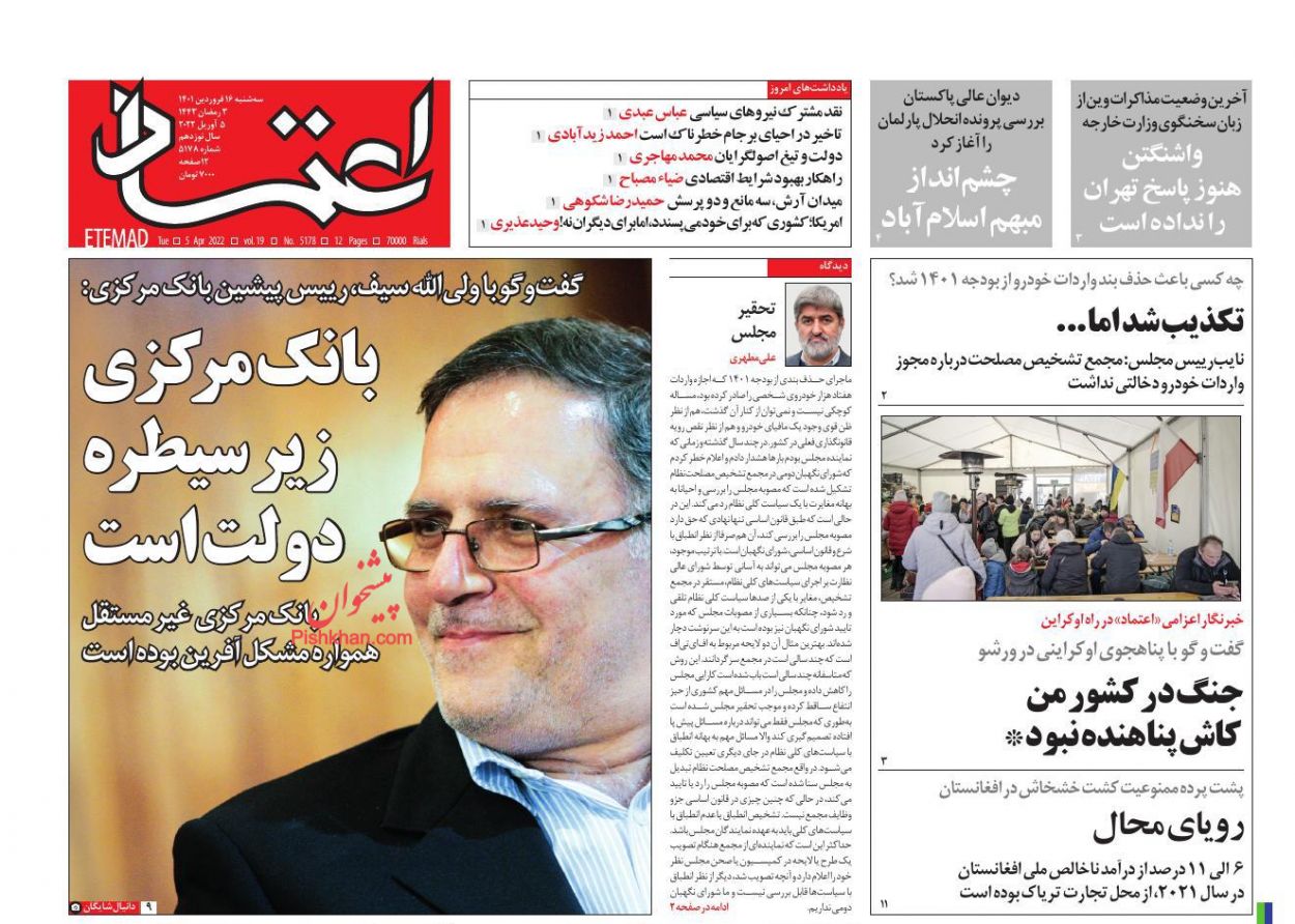 کد: 130354 | 16 فروردین 1401 ساعت 07:05 صفحه نخست روزنامههای امروز سه شنبه 16 فروردین 1401 صفحه نخست روزنامههای امروز سه شنبه 16 فروردین 1401 روزنامه های سراسری مطبوعات کشور روزنامه اشتراک گذاری گزارش خطا × اشتراک گذاری مطلب: صفحه نخست روزنامههای امروز سه شنبه 16 فروردین 1401 فیسبوک اینستاگرام تلگرام ایکس (توییتر) ایتا بله روبیکا × گزارش خطا برای گزارش خطا با پست الکترونیکی: ruydadiran[at]gmail.com در ارتباط باشید