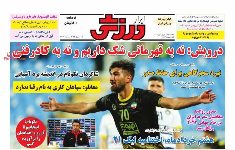 صفحه نخست روزنامههای امروز پنجشنبه 25 فروردین 1401 1401/01/25 07:18 340 0 0 صفحه نخست روزنامههای امروز پنجشنبه 25 فروردین 1401 بیشتر بخوانید صفحه نخست روزنامههای امروز یکشنبه 21 فروردین 1401صفحه نخست روزنامههای امروز پنجشنبه 18 فروردین 1401روزنامه رویداد امروز پنجشنبه 22 فروردین 1398 روزنامه های سراسری مطبوعات کشور روزنامه 0 1 2 3 4 5 امتیاز: 0 (از 0 رأی ) مطالب مشابه صفحه نخست روزنامههای امروز پنجشنبه 18 فروردین 1401 ادامه مطلب روزنامه رویداد امروز پنجشنبه 22 فروردین 1398 ادامه مطلب صفحه نخست روزنامههای امروز یکشنبه 21 فروردین 1401 ادامه مطلب برچسب ها روزنامه های سراسری مطبوعات کشور روزنامه نظرشما اینجا بنویسید کد را وارد کنید: * کد را وارد کنید ارسال نظرهای دیگران نظری وجود ندارد. شما اولین نفری باشید که نظر می دهد اشتراک گذاری پیشنهاد ویرایش ارسال به تلگرام ارسال به فیسبوک ارسال به توئیتر