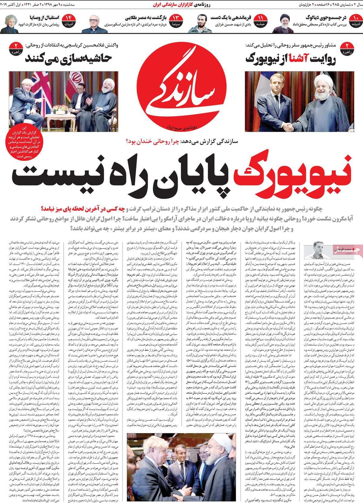 تصویر صفحه نخست روزنامه سازندگیرا در زیر میبینید.