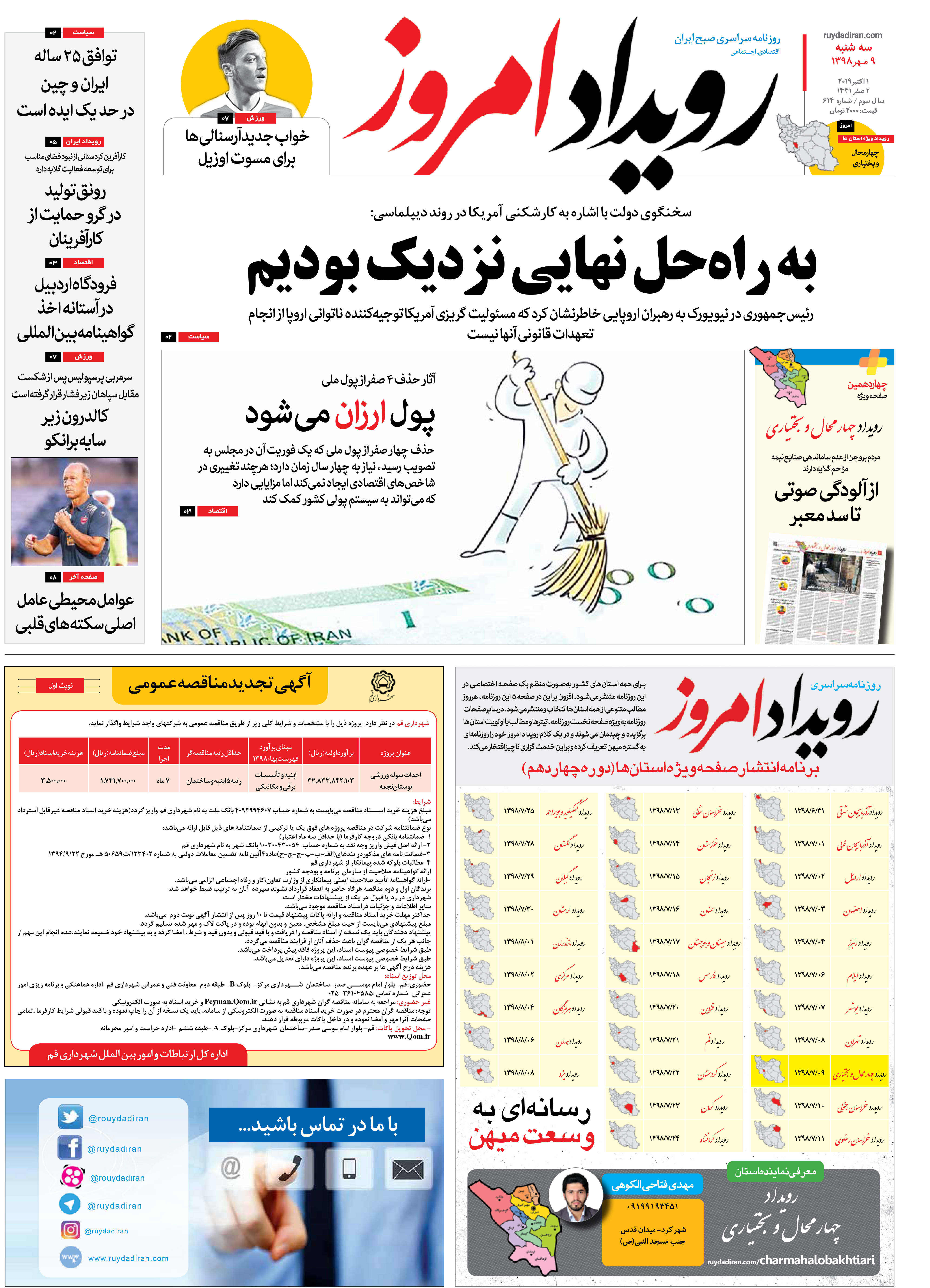 کد: 13332 | 09 مهر 1398 ساعت 00:00 روزنامه رویداد امروز سه شنبه ۹ مهر ۱۳۹۸ روزنامه رویداد امروز رویداد ایران البرز اشتراک گذاری گزارش خطا × اشتراک گذاری مطلب: روزنامه رویداد امروز سه شنبه ۹ مهر ۱۳۹۸ فیسبوک اینستاگرام تلگرام ایکس (توییتر) ایتا بله روبیکا × گزارش خطا برای گزارش خطا با پست الکترونیکی: ruydadiran[at]gmail.com در ارتباط باشید