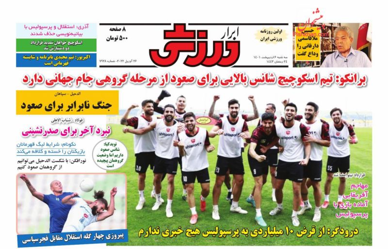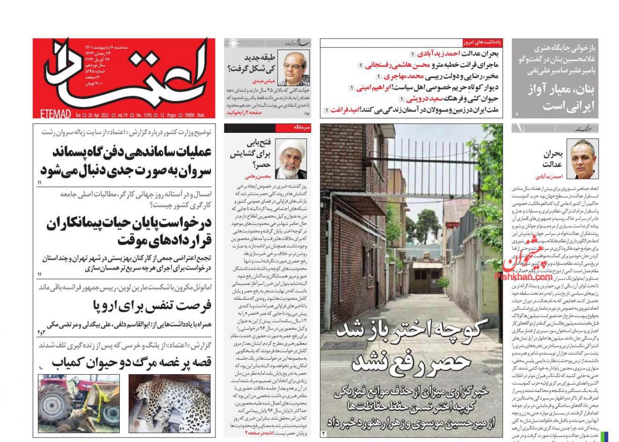 صفحه نخست روزنامه‌های امروز سه شنبه 6 اردیبهشت 1401