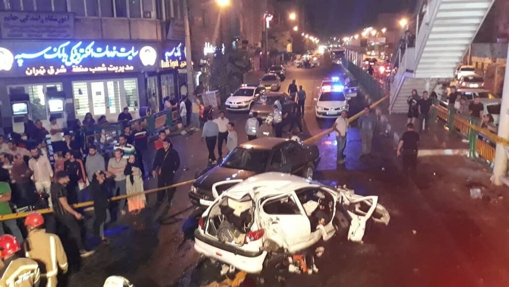 تصادف مرگبار پژو ۲۰۶ با پرشیا و ۴۰۵ در خیابان رسالت تهران