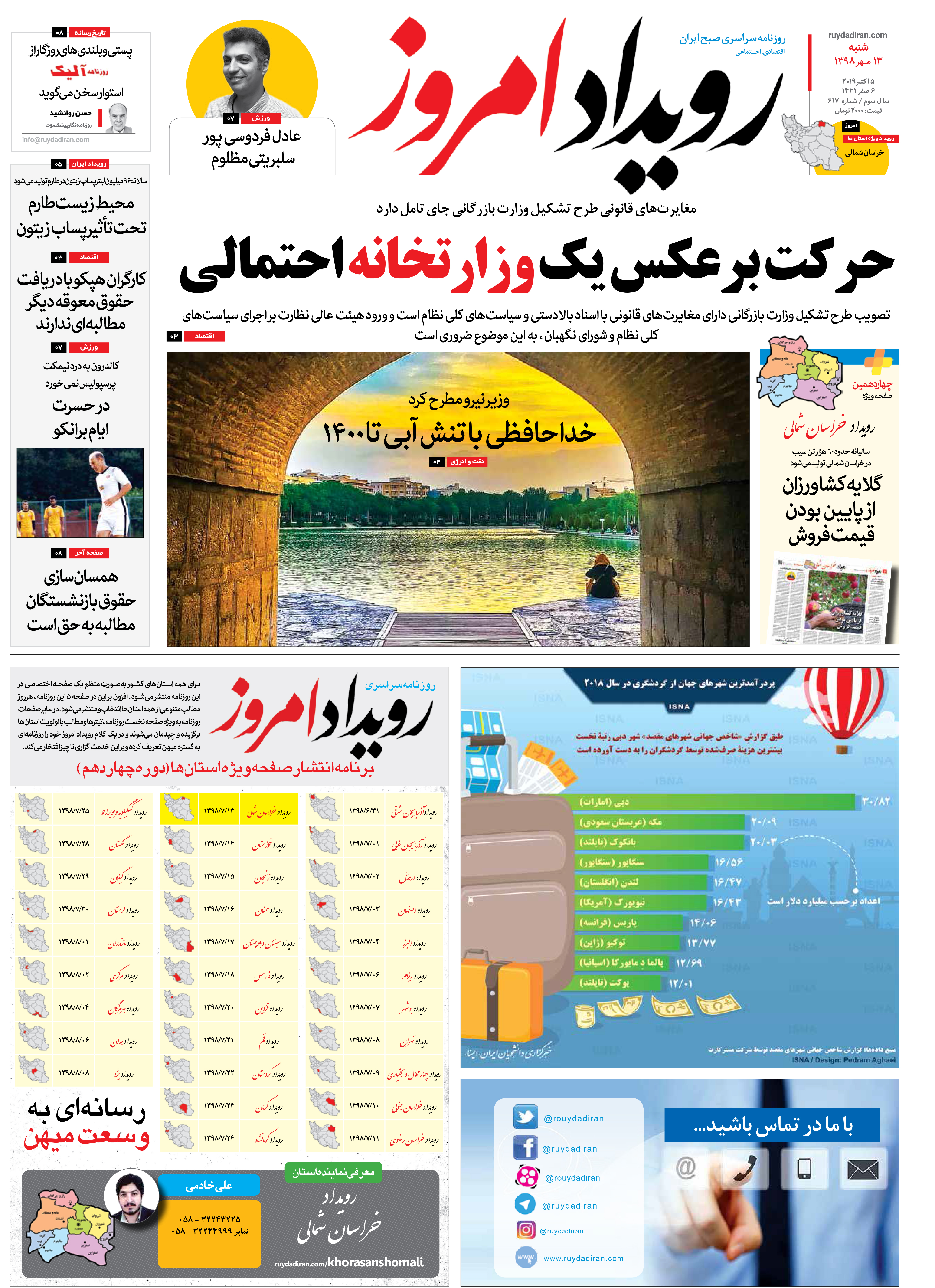 کد: 13555 | 13 مهر 1398 ساعت 00:00 روزنامه رویداد امروز شنبه ۱۳ مهر ۱۳۹۸ روزنامه رویداد امروز رویداد ایران البرز اشتراک گذاری گزارش خطا × اشتراک گذاری مطلب: روزنامه رویداد امروز شنبه ۱۳ مهر ۱۳۹۸ فیسبوک اینستاگرام تلگرام ایکس (توییتر) ایتا بله روبیکا × گزارش خطا برای گزارش خطا با پست الکترونیکی: ruydadiran[at]gmail.com در ارتباط باشید