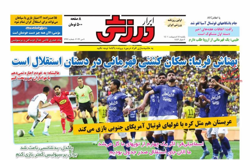 کد: 135740 | 18 اردیبهشت 1401 ساعت 07:03 صفحه نخست روزنامههای امروز یکشنبه 18 اردیبهشت 1401 صفحه نخست روزنامههای امروز یکشنبه 18 اردیبهشت 1401 روزنامه های سراسری مطبوعات کشور روزنامه اشتراک گذاری گزارش خطا × اشتراک گذاری مطلب: صفحه نخست روزنامههای امروز یکشنبه 18 اردیبهشت 1401 فیسبوک اینستاگرام تلگرام ایکس (توییتر) ایتا بله روبیکا × گزارش خطا برای گزارش خطا با پست الکترونیکی: ruydadiran[at]gmail.com در ارتباط باشید