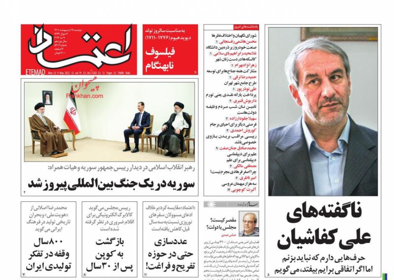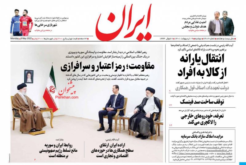 صفحه نخست روزنامه‌های امروز دوشنبه 19 اردیبهشت 1401