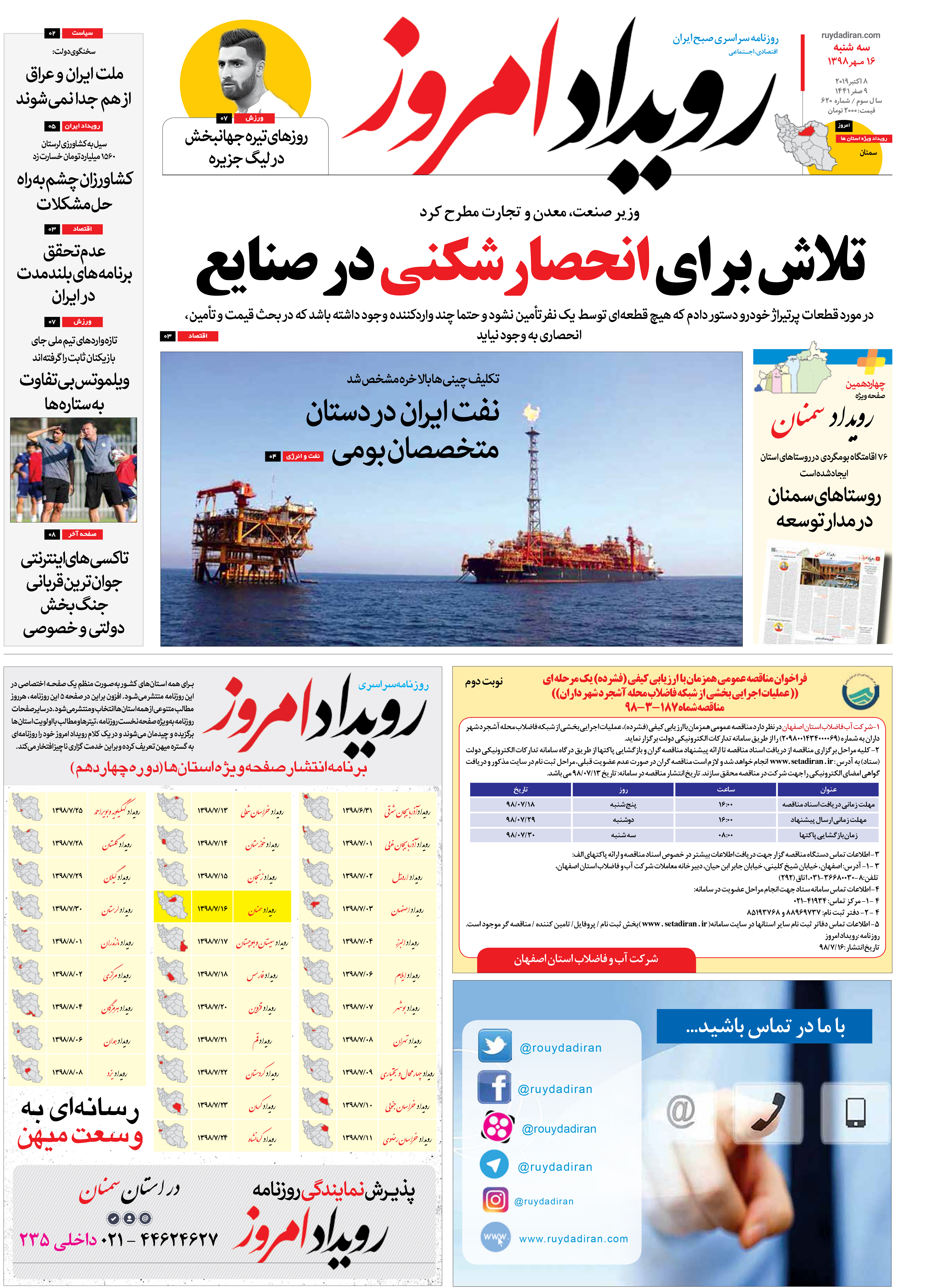 کد: 13774 | 16 مهر 1398 ساعت 00:00 روزنامه رویداد امروز سه شنبه ۱۶ مهر ۱۳۹۸ روزنامه رویداد امروز رویداد ایران البرز اشتراک گذاری گزارش خطا × اشتراک گذاری مطلب: روزنامه رویداد امروز سه شنبه ۱۶ مهر ۱۳۹۸ فیسبوک اینستاگرام تلگرام ایکس (توییتر) ایتا بله روبیکا × گزارش خطا برای گزارش خطا با پست الکترونیکی: ruydadiran[at]gmail.com در ارتباط باشید