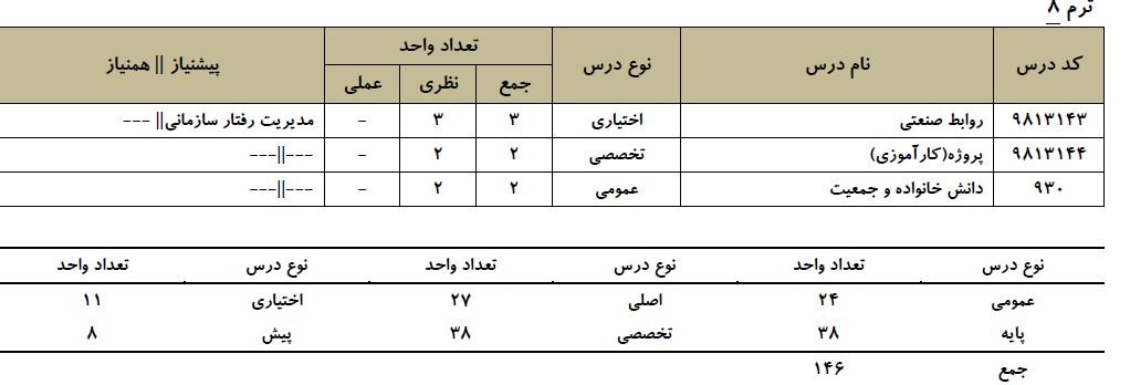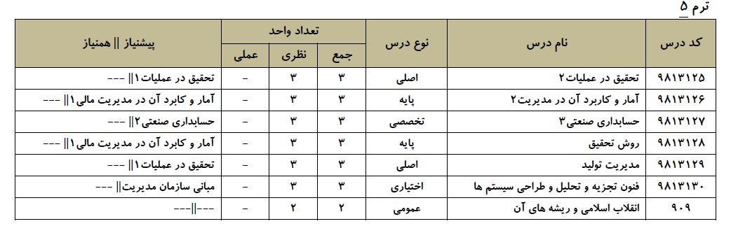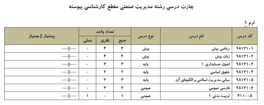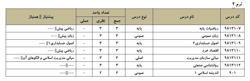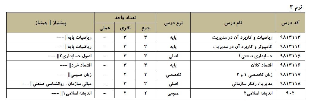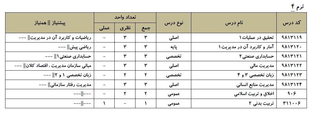 واحدهای درسی دوره کارشناسی مدیریت صنعتی عبارتند از؛