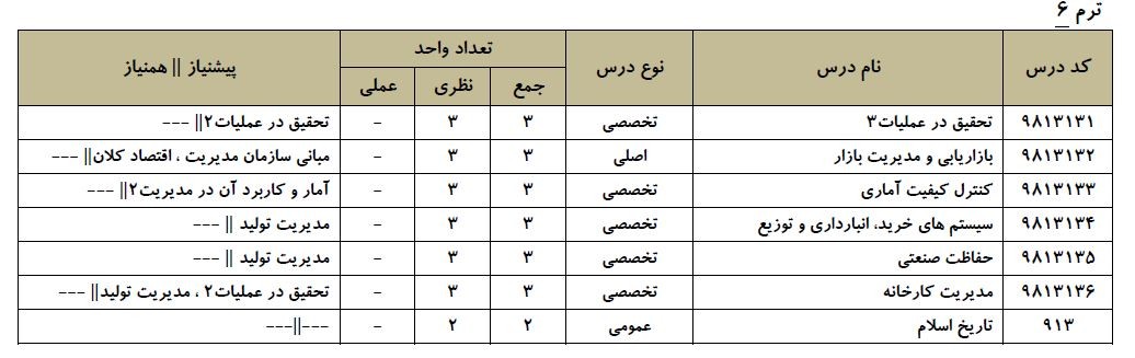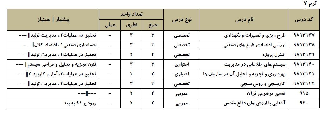 | واحدهای درسی دوره کارشناسی مدیریت صنعتی؟ |