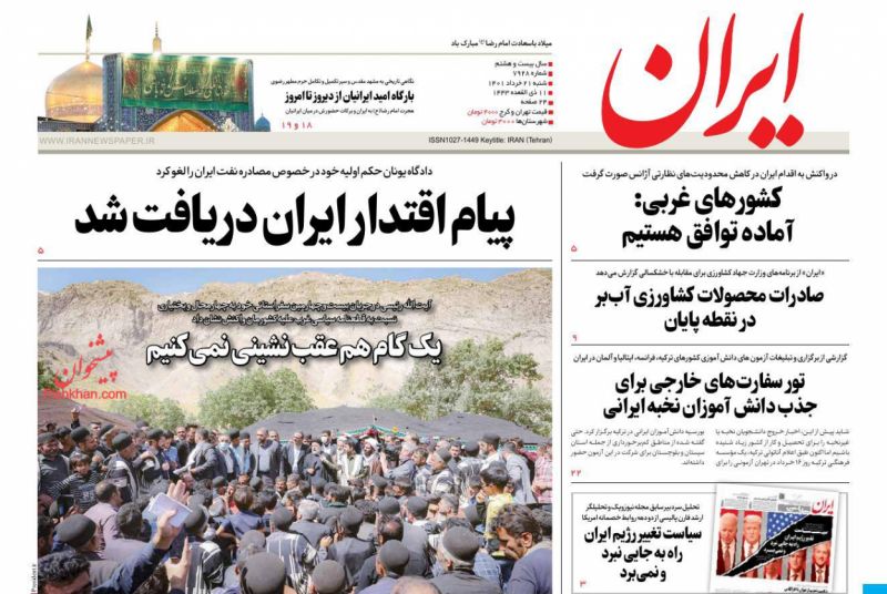 کد: 143476 | 21 خرداد 1401 ساعت 06:50 صفحه نخست روزنامههای امروز شنبه 21 خرداد 1401 صفحه نخست روزنامههای امروز شنبه 21 خرداد 1401 روزنامه های سراسری مطبوعات کشور روزنامه اشتراک گذاری گزارش خطا × اشتراک گذاری مطلب: صفحه نخست روزنامههای امروز شنبه 21 خرداد 1401 فیسبوک اینستاگرام تلگرام ایکس (توییتر) ایتا بله روبیکا × گزارش خطا برای گزارش خطا با پست الکترونیکی: ruydadiran[at]gmail.com در ارتباط باشید
