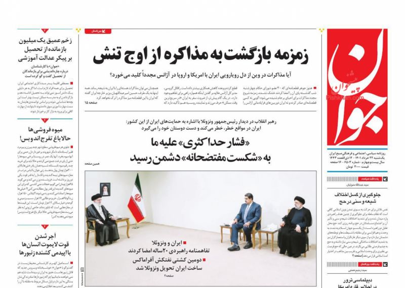 صفحه نخست روزنامه‌های امروز یکشنبه 22 خرداد 1401
