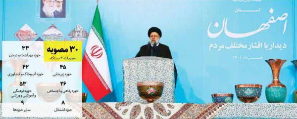 رییسی در جمع اقشار مردم اصفهان حاضر شد و با بیان اینکه درجاهایی که در زمان خود اقدامی نشده عقبماندگی داریم تأکید کرد: بسیار زودتر باید اصلاحات اقتصادی در کشور انجام میشد. رئیسجمهور عنوان کرد: اصلاحات اقتصادی، قطع کردن دست رانت، مفسدان و دلالان همچنین باز کردن راه برای جوانان یک ضرورت است. او افزود: باز کردن دست بخش خصوصی و فعالان اقتصادی، انضباط مالی دولت، اداره کمهزینه و پربهره در کشور نیز ضرورت دیگری است. او تصریح کرد: افزایش سرمایهگذاری داخلی و خارجی، افزایش بهرهوری و رشد اقتصادی در کشور یک ضرورت است و این کارها بسیار زودتر این باید انجام میشد و در این حوزهها عقبماندگی داریم. رئیسی گفت: از مشکلات معیشتی مردم باخبر هستم و افتخارم این است که در درون مردم هستم و اطلاع دارم. از مشکلاتی که عزیزان ما بعضا به آن گرفتار هستند، بسیار رنج میبرم اما اقدامات دولت، صبر و همکاری مردم پیگیری مجدانه مسئولان، حضور همه فعالان اقتصادی به لطف خداوند شرایط را به نفع مردم رقم خواهد زد. او افزود: ملت ایران در عرصههای مختلف طرفدار شعار «ما میتوانیم» هستند، اگر کسانی تعبیر کنند که مگر میشود مسائل اقتصادی را حل کرد، این صحبتها را به شهید سلیمانی و خرازی هم میزدند، اما شهیدان و مکتب شهید سلیمانی ثابت کرد ما میتوانیم. امروز به همهکسانی که در دلشان شک و تردید وجود دارد تأکید میکنم که ما میتوانیم.
