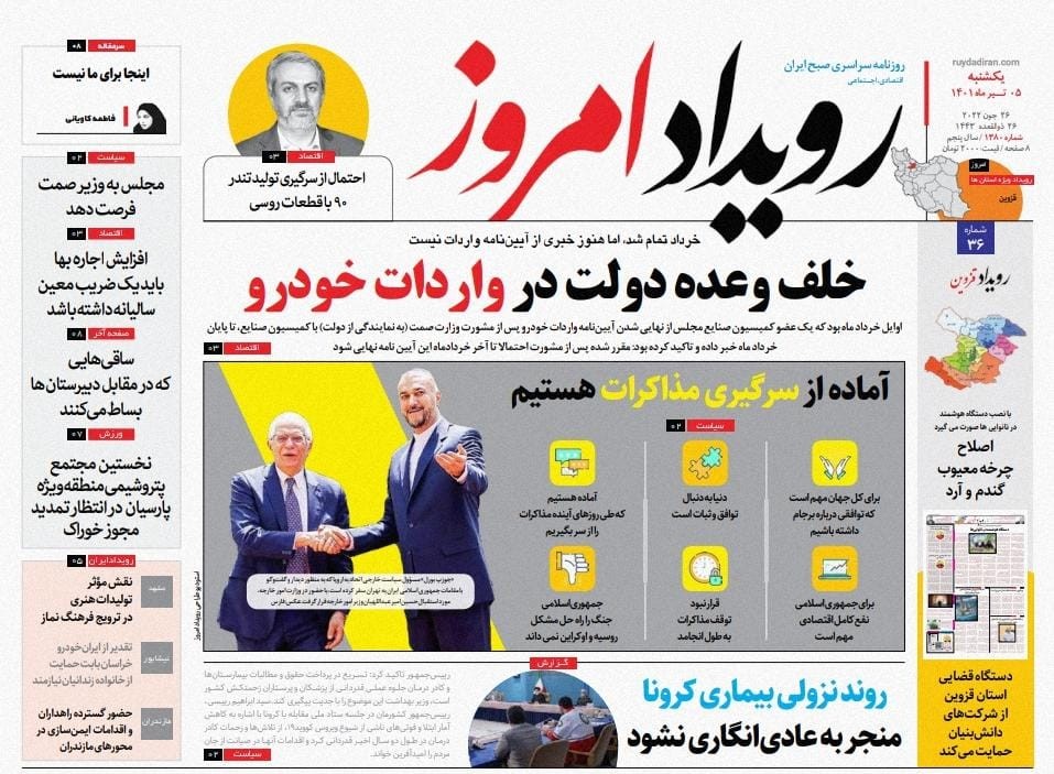 کد: 146496 | 05 تیر 1401 ساعت 00:00 روزنامه رویداد امروز یکشنبه ۵ تیر ۱۴۰۱ اشتراک گذاری گزارش خطا × اشتراک گذاری مطلب: روزنامه رویداد امروز یکشنبه ۵ تیر ۱۴۰۱ فیسبوک اینستاگرام تلگرام ایکس (توییتر) ایتا بله روبیکا × گزارش خطا برای گزارش خطا با پست الکترونیکی: ruydadiran[at]gmail.com در ارتباط باشید