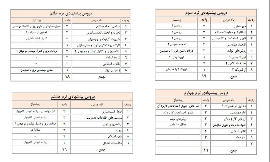 | تحصیل در رشته مهندسی صنایع در مقطع کارشناسی 4 سال است که 8 ترم تحصیلی را شامل می شود. |
