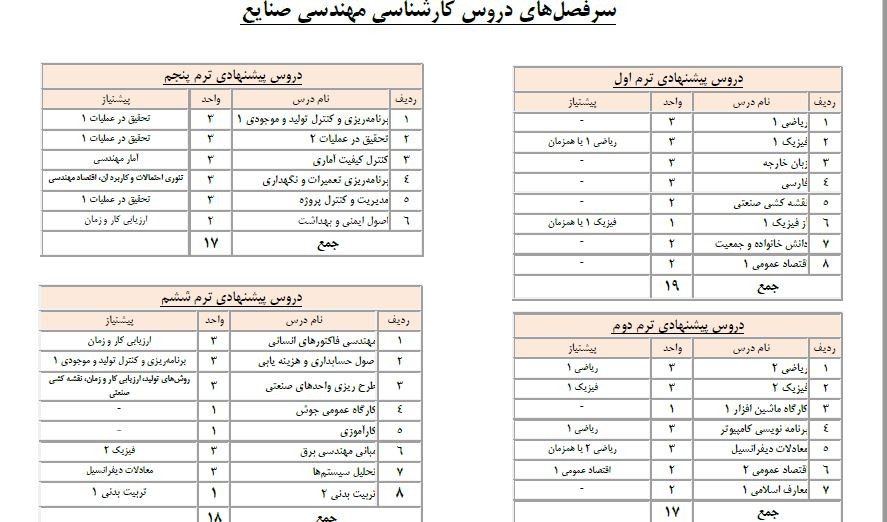 | لیست دروس تخصصی و عمومی رشته مهندسی صنایع در متن مطلب ارائه شده است. |