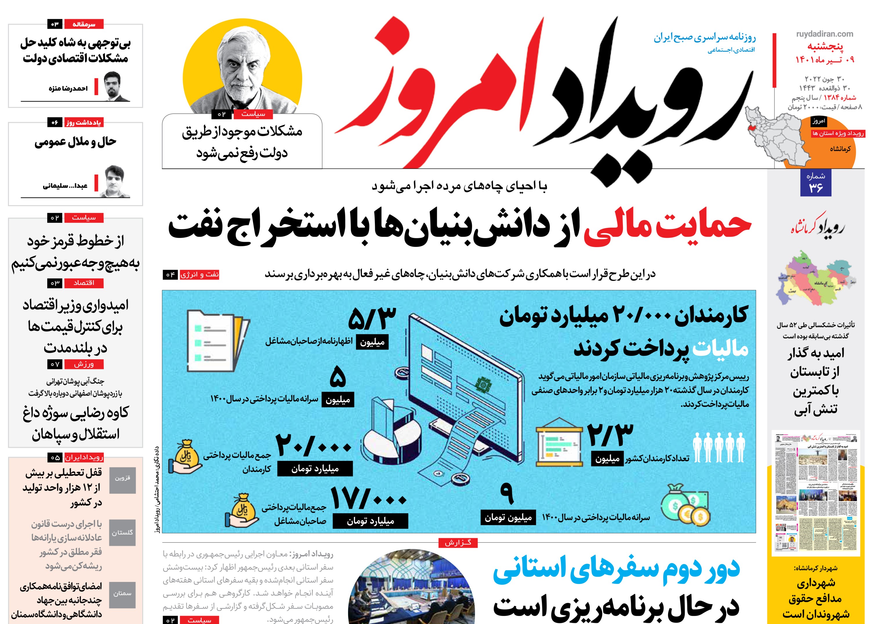کد: 147104 | 09 تیر 1401 ساعت 00:00 روزنامه رویداد امروز پنج شنبه ۹ تیر ۱۴۰۱ اشتراک گذاری گزارش خطا × اشتراک گذاری مطلب: روزنامه رویداد امروز پنج شنبه ۹ تیر ۱۴۰۱ فیسبوک اینستاگرام تلگرام ایکس (توییتر) ایتا بله روبیکا × گزارش خطا برای گزارش خطا با پست الکترونیکی: ruydadiran[at]gmail.com در ارتباط باشید