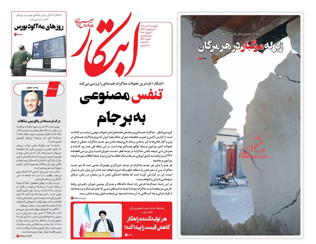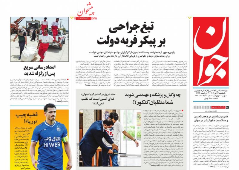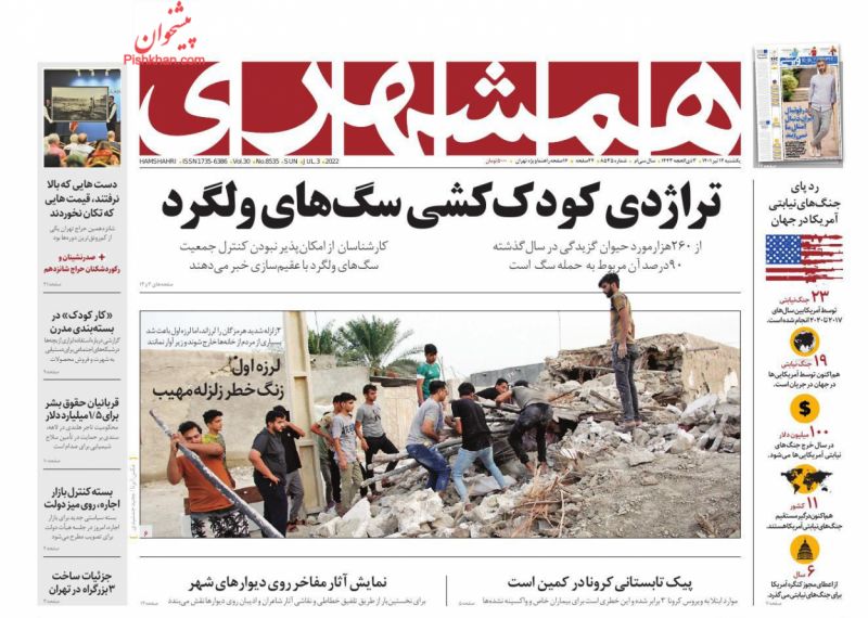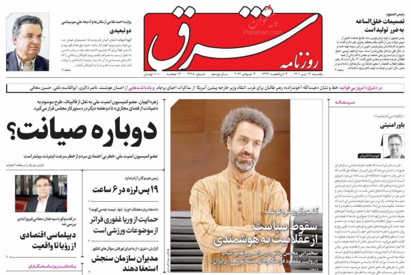 صفحه نخست روزنامه‌های امروز یکشنبه 12 تیر 1401