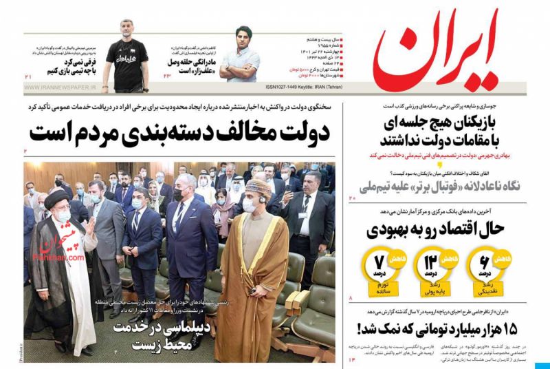 کد: 149273 | 22 تیر 1401 ساعت 06:40 صفحه نخست روزنامههای امروز چهارشنبه 22 تیر 1401 صفحه نخست روزنامههای امروز چهارشنبه 22 تیر 1401 روزنامه های سراسری مطبوعات کشور روزنامه اشتراک گذاری گزارش خطا × اشتراک گذاری مطلب: صفحه نخست روزنامههای امروز چهارشنبه 22 تیر 1401 فیسبوک اینستاگرام تلگرام ایکس (توییتر) ایتا بله روبیکا × گزارش خطا برای گزارش خطا با پست الکترونیکی: ruydadiran[at]gmail.com در ارتباط باشید