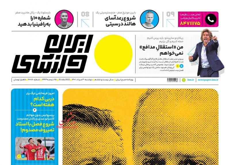 کد: 151368 | 03 مرداد 1401 ساعت 06:28 صفحه نخست روزنامههای امروز دوشنبه3 مرداد 1401 صفحه نخست روزنامههای امروز دوشنبه3 مرداد 1401 روزنامه های سراسری مطبوعات کشور روزنامه اشتراک گذاری گزارش خطا × اشتراک گذاری مطلب: صفحه نخست روزنامههای امروز دوشنبه3 مرداد 1401 فیسبوک اینستاگرام تلگرام ایکس (توییتر) ایتا بله روبیکا × گزارش خطا برای گزارش خطا با پست الکترونیکی: ruydadiran[at]gmail.com در ارتباط باشید
