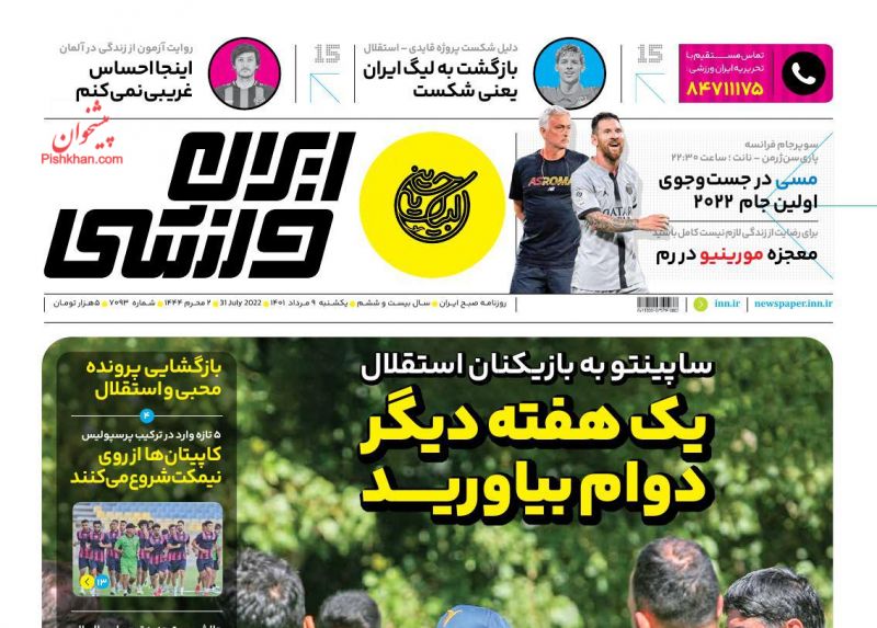 صفحه نخست روزنامههای امروز یکشنبه9 مرداد 1401 1401/05/09 06:34 276 0 0 صفحه نخست روزنامههای امروز یکشنبه9 مرداد 1401 بیشتر بخوانید صفحه نخست روزنامههای امروز سه شنبه 25 مرداد 1401صفحه نخست روزنامههای امروز یکشنبه9 آبان 1400صفحه نخست روزنامههای امروز یکشنبه9 آذر 99 روزنامه های سراسری مطبوعات کشور روزنامه 0 1 2 3 4 5 امتیاز: 0 (از 0 رأی ) مطالب مشابه صفحه نخست روزنامههای امروز یکشنبه9 آذر 99 ادامه مطلب صفحه نخست روزنامههای امروز یکشنبه9 آبان 1400 ادامه مطلب صفحه نخست روزنامههای امروز سه شنبه 25 مرداد 1401 ادامه مطلب برچسب ها روزنامه های سراسری مطبوعات کشور روزنامه نظرشما اینجا بنویسید کد را وارد کنید: * کد را وارد کنید ارسال نظرهای دیگران نظری وجود ندارد. شما اولین نفری باشید که نظر می دهد اشتراک گذاری پیشنهاد ویرایش ارسال به تلگرام ارسال به فیسبوک ارسال به توئیتر