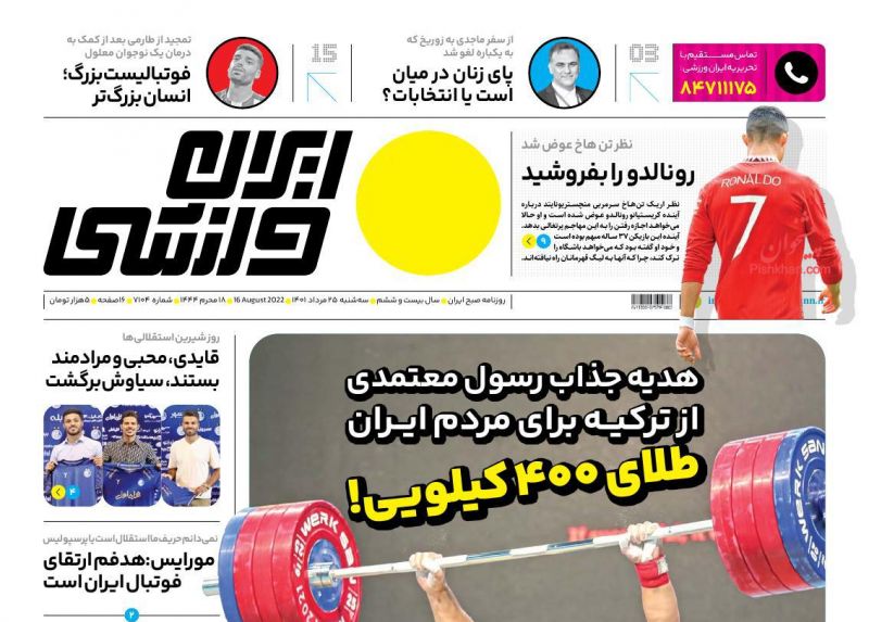 صفحه نخست روزنامههای امروز سه شنبه 25 مرداد 1401 1401/05/25 06:35 320 0 0 صفحه نخست روزنامههای امروز سه شنبه 25 مرداد 1401 بیشتر بخوانید صفحه نخست روزنامههای امروز شنبه 29 مرداد 1401صفحه نخست روزنامههای امروز شنبه 22 مرداد 1401صفحه نخست روزنامههای امروز شنبه 1 مرداد 1401 روزنامه های سراسری مطبوعات کشور روزنامه 0 1 2 3 4 5 امتیاز: 0 (از 0 رأی ) مطالب مشابه صفحه نخست روزنامههای امروز شنبه 29 مرداد 1401 ادامه مطلب صفحه نخست روزنامههای امروز شنبه 22 مرداد 1401 ادامه مطلب صفحه نخست روزنامههای امروز شنبه 1 مرداد 1401 ادامه مطلب برچسب ها روزنامه های سراسری مطبوعات کشور روزنامه نظرشما اینجا بنویسید کد را وارد کنید: * کد را وارد کنید ارسال نظرهای دیگران نظری وجود ندارد. شما اولین نفری باشید که نظر می دهد اشتراک گذاری پیشنهاد ویرایش ارسال به تلگرام ارسال به فیسبوک ارسال به توئیتر