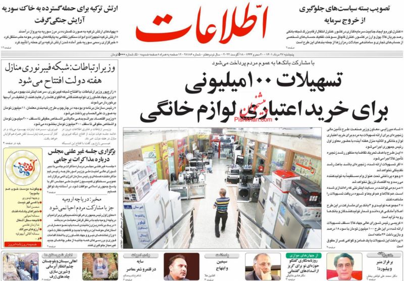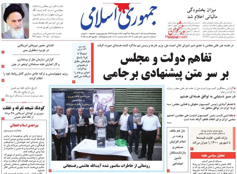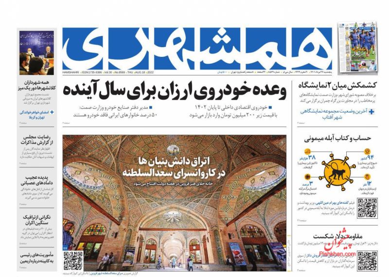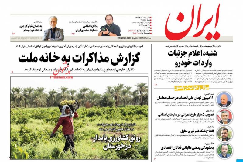 صفحه نخست روزنامه‌های امروز پنجشنبه 27 مرداد 1401