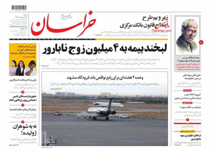 صفحه نخست روزنامههای امروز شنبه 29 مرداد 1401 1401/05/29 06:48 315 0 0 صفحه نخست روزنامههای امروز شنبه 29 مرداد 1401 بیشتر بخوانید صفحه نخست روزنامههای امروز سه شنبه 25 مرداد 1401صفحه نخست روزنامههای امروز شنبه 22 مرداد 1401صفحه نخست روزنامههای امروز شنبه 1 مرداد 1401 روزنامه های سراسری مطبوعات کشور روزنامه 0 1 2 3 4 5 امتیاز: 0 (از 0 رأی ) مطالب مشابه صفحه نخست روزنامههای امروز سه شنبه 25 مرداد 1401 ادامه مطلب صفحه نخست روزنامههای امروز شنبه 22 مرداد 1401 ادامه مطلب صفحه نخست روزنامههای امروز شنبه 1 مرداد 1401 ادامه مطلب برچسب ها روزنامه های سراسری مطبوعات کشور روزنامه نظرشما اینجا بنویسید کد را وارد کنید: * کد را وارد کنید ارسال نظرهای دیگران نظری وجود ندارد. شما اولین نفری باشید که نظر می دهد اشتراک گذاری پیشنهاد ویرایش ارسال به تلگرام ارسال به فیسبوک ارسال به توئیتر