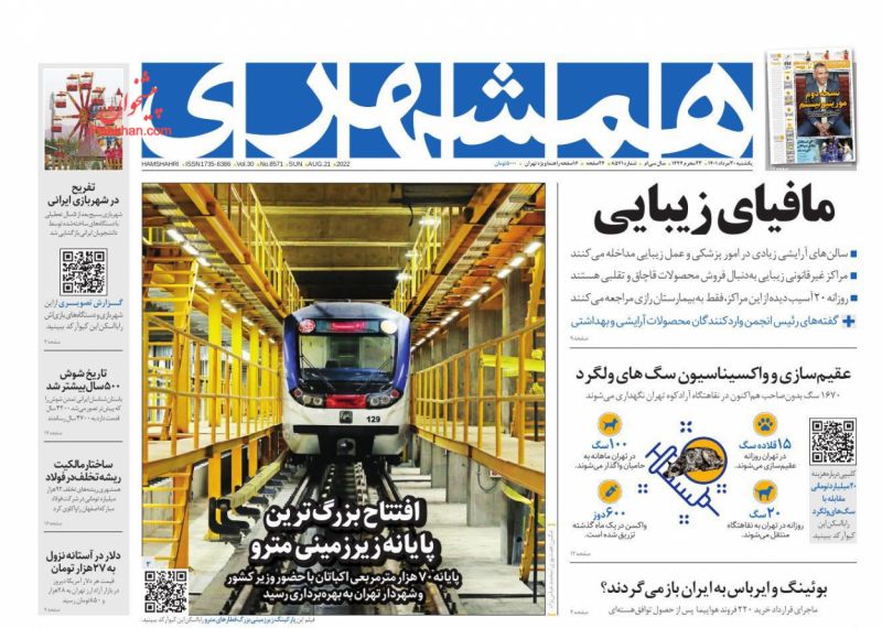 کد: 156416 | 31 مرداد 1401 ساعت 06:44 صفحه نخست روزنامههای امروز دوشنبه 31 مرداد 1401 صفحه نخست روزنامههای امروز دوشنبه 31 مرداد 1401 روزنامه های سراسری مطبوعات کشور روزنامه اشتراک گذاری گزارش خطا × اشتراک گذاری مطلب: صفحه نخست روزنامههای امروز دوشنبه 31 مرداد 1401 فیسبوک اینستاگرام تلگرام ایکس (توییتر) ایتا بله روبیکا × گزارش خطا برای گزارش خطا با پست الکترونیکی: ruydadiran[at]gmail.com در ارتباط باشید