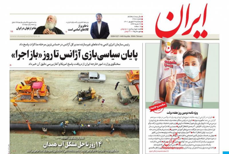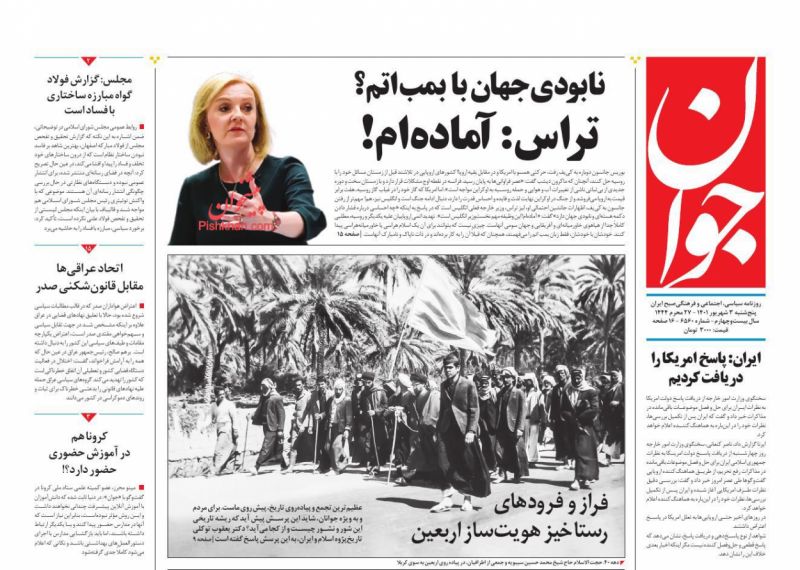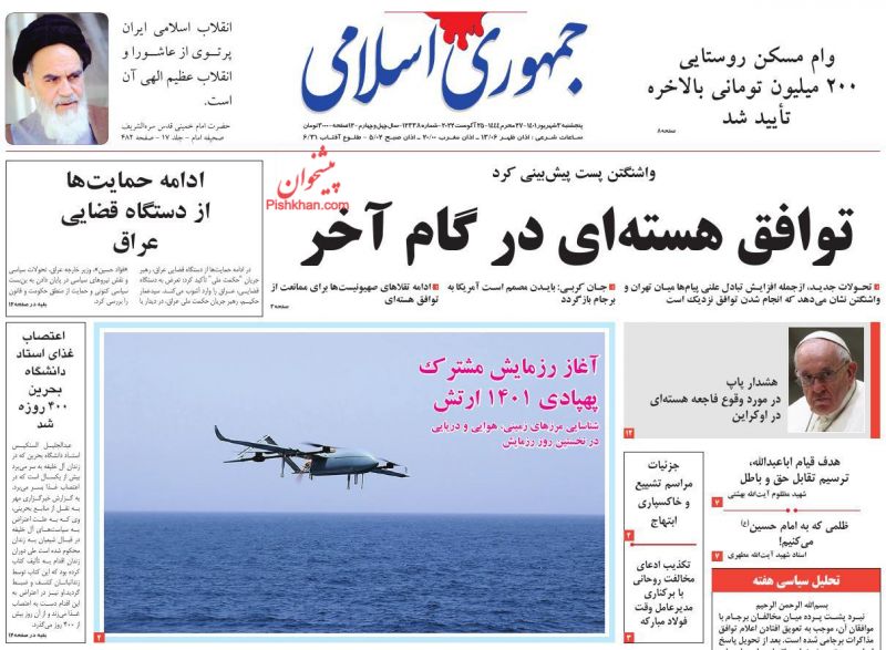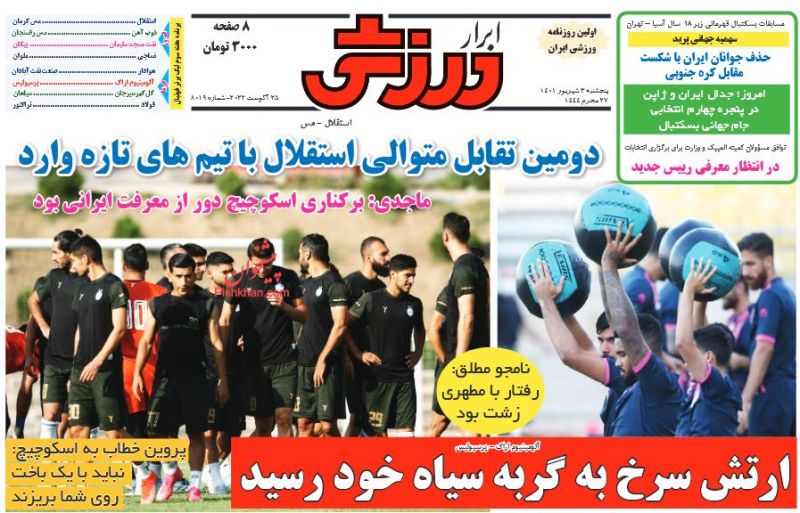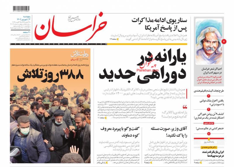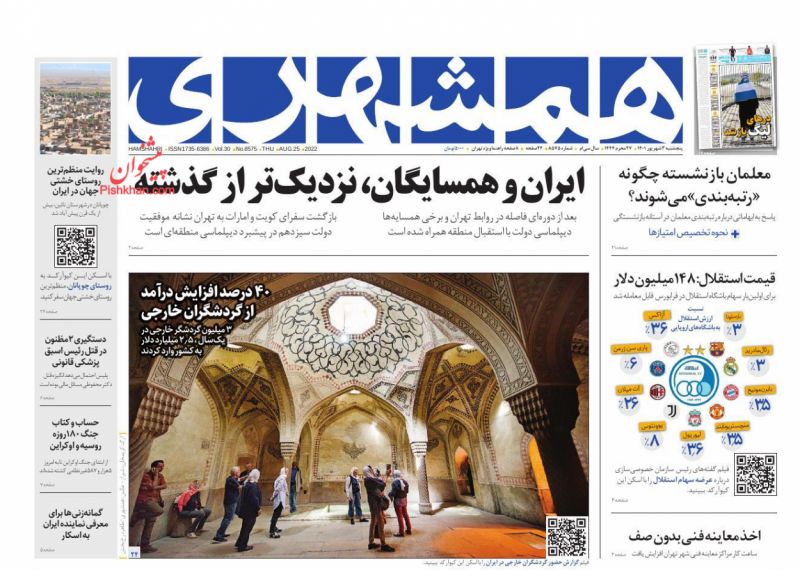 صفحه نخست روزنامه‌های امروز پنجشنبه 3 شهریور 1401