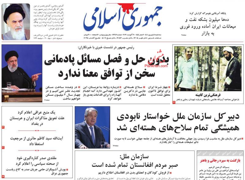 کد: 157895 | 08 شهریور 1401 ساعت 06:44 صفحه نخست روزنامههای امروز سه شنبه 8 شهریور 1401 صفحه نخست روزنامههای امروز سه شنبه 8 شهریور 1401 روزنامه های سراسری مطبوعات کشور روزنامه اشتراک گذاری گزارش خطا × اشتراک گذاری مطلب: صفحه نخست روزنامههای امروز سه شنبه 8 شهریور 1401 فیسبوک اینستاگرام تلگرام ایکس (توییتر) ایتا بله روبیکا × گزارش خطا برای گزارش خطا با پست الکترونیکی: ruydadiran[at]gmail.com در ارتباط باشید