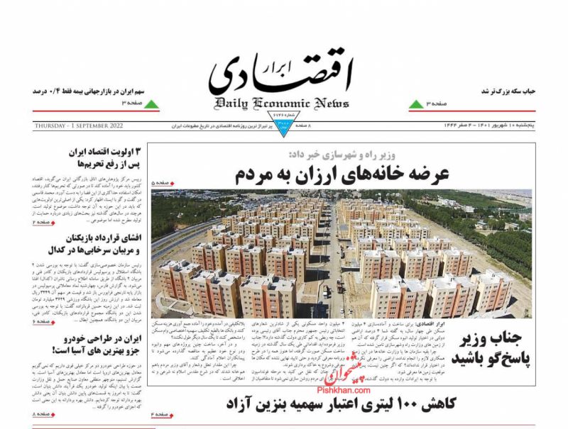 صفحه نخست روزنامه‌های امروز پنجشنبه 10 شهریور 1401