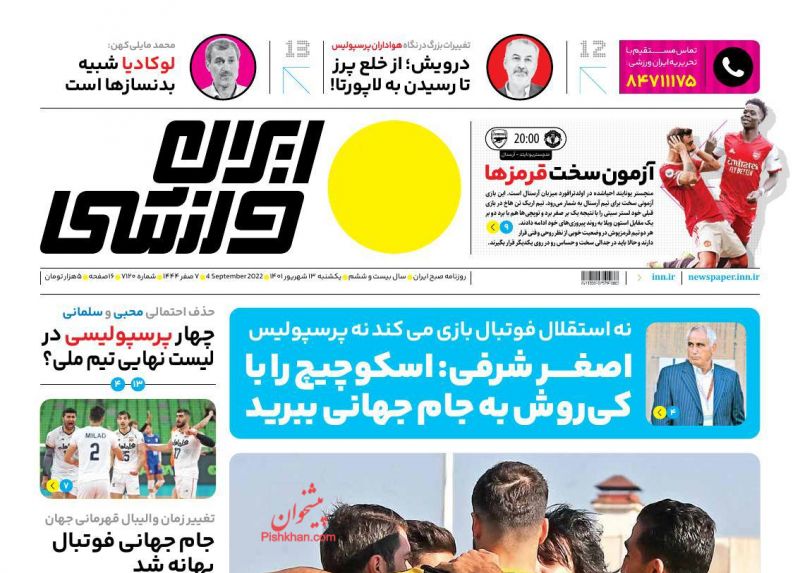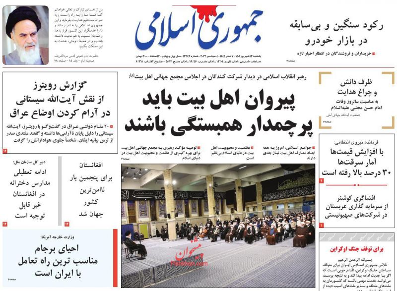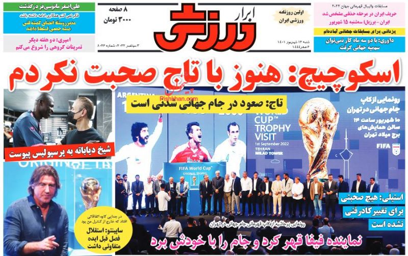 کد: 158791 | 13 شهریور 1401 ساعت 06:42 صفحه نخست روزنامههای امروز یکشنبه 13 شهریور 1401 صفحه نخست روزنامههای امروز یکشنبه 13 شهریور 1401 روزنامه های سراسری مطبوعات کشور روزنامه اشتراک گذاری گزارش خطا × اشتراک گذاری مطلب: صفحه نخست روزنامههای امروز یکشنبه 13 شهریور 1401 فیسبوک اینستاگرام تلگرام ایکس (توییتر) ایتا بله روبیکا × گزارش خطا برای گزارش خطا با پست الکترونیکی: ruydadiran[at]gmail.com در ارتباط باشید