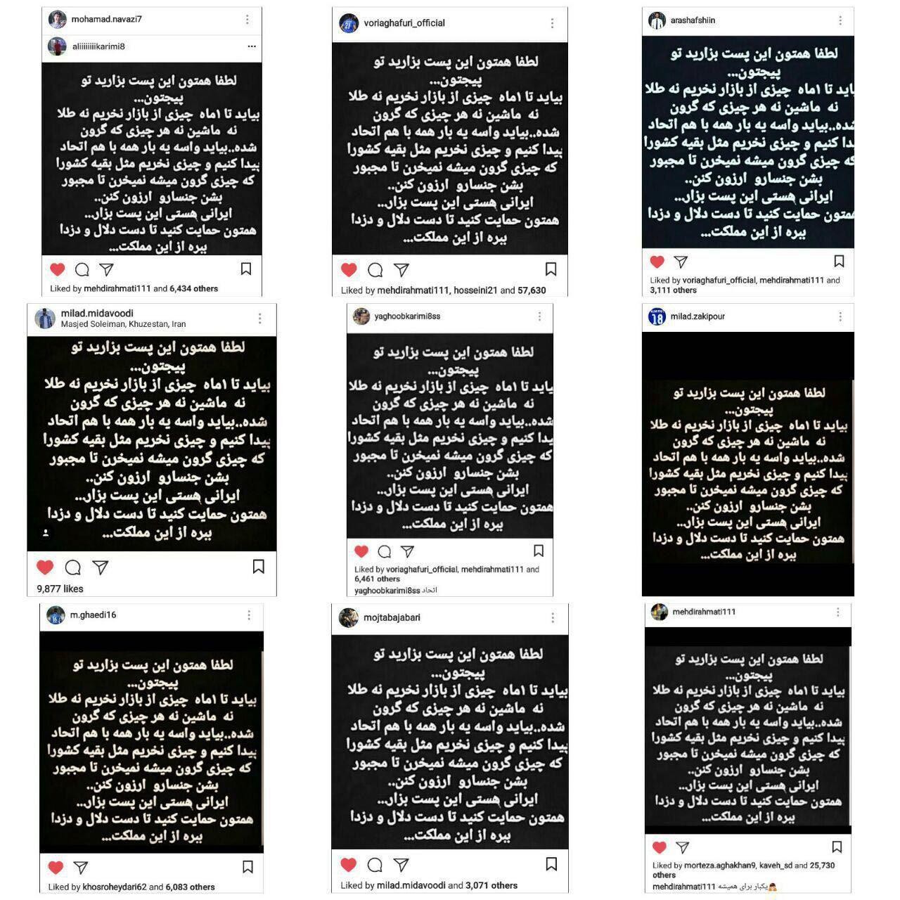 پس از دعوت علی کریمی، بسیاری از هنرمندان و ورزشکاران نیز با انتشار همان پست، به ترویج این موضوع پرداختند و مردم عادی نیز به این کمپین پیوستند.