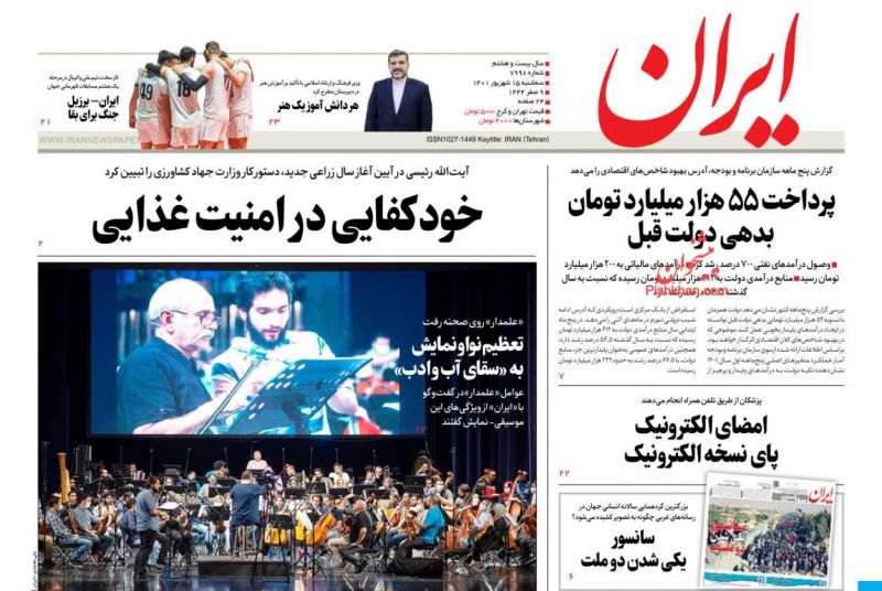 کد: 159234 | 15 شهریور 1401 ساعت 06:36 صفحه نخست روزنامههای امروز سه شنبه 15 شهریور 1401 صفحه نخست روزنامههای امروز سه شنبه 15 شهریور 1401 روزنامه های سراسری مطبوعات کشور روزنامه اشتراک گذاری گزارش خطا × اشتراک گذاری مطلب: صفحه نخست روزنامههای امروز سه شنبه 15 شهریور 1401 فیسبوک اینستاگرام تلگرام ایکس (توییتر) ایتا بله روبیکا × گزارش خطا برای گزارش خطا با پست الکترونیکی: ruydadiran[at]gmail.com در ارتباط باشید