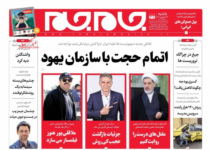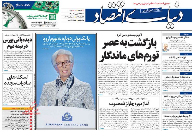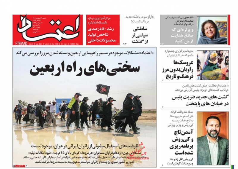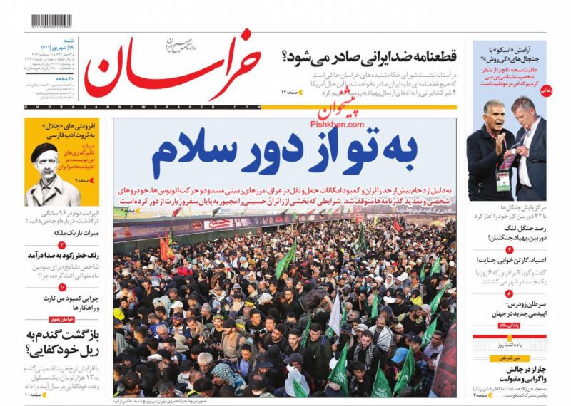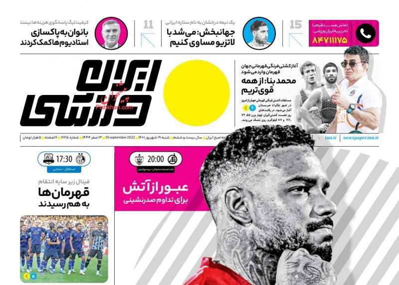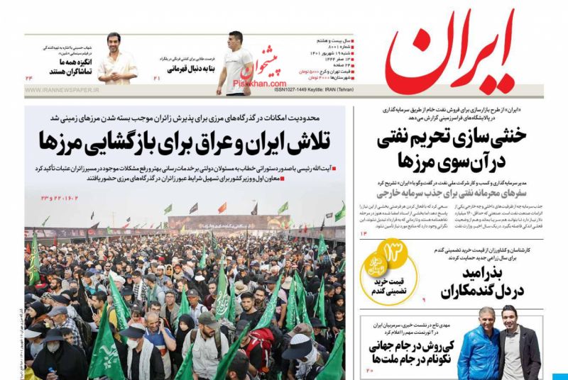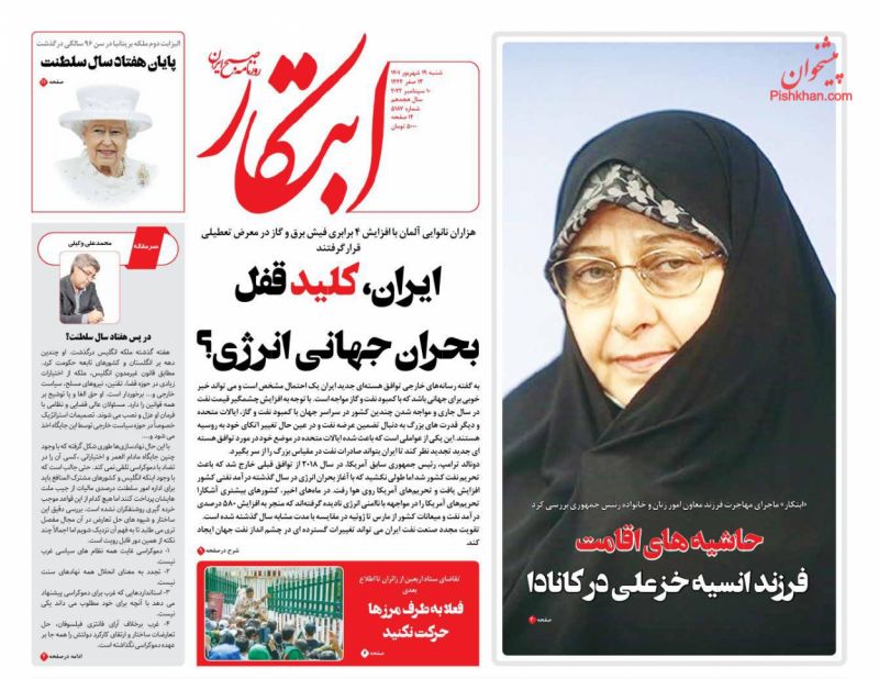 صفحه نخست روزنامه‌های امروز شنبه 19 شهریور 1401