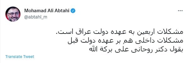 مشکلات اربعین به عهده دولت عراق، مشکلات داخلی هم بر عهده دولت قبل