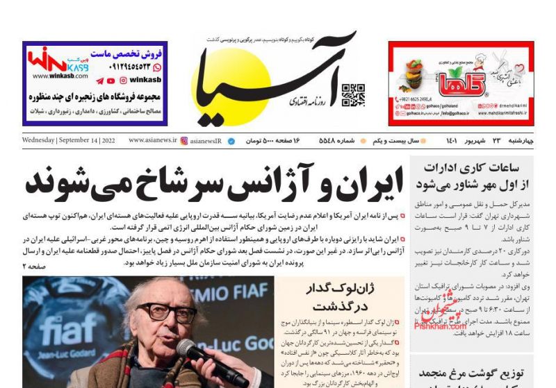 کد: 161193 | 23 شهریور 1401 ساعت 06:45 صفحه نخست روزنامههای امروز چهارشنبه 23 شهریور 1401 صفحه نخست روزنامههای امروز چهارشنبه 23 شهریور 1401 روزنامه های سراسری مطبوعات کشور روزنامه اشتراک گذاری گزارش خطا × اشتراک گذاری مطلب: صفحه نخست روزنامههای امروز چهارشنبه 23 شهریور 1401 فیسبوک اینستاگرام تلگرام ایکس (توییتر) ایتا بله روبیکا × گزارش خطا برای گزارش خطا با پست الکترونیکی: ruydadiran[at]gmail.com در ارتباط باشید