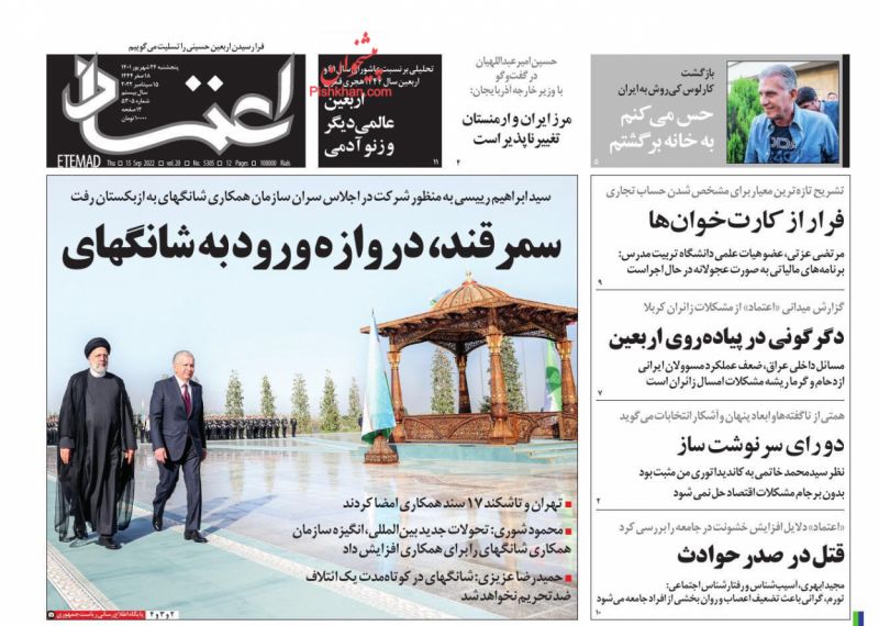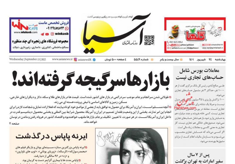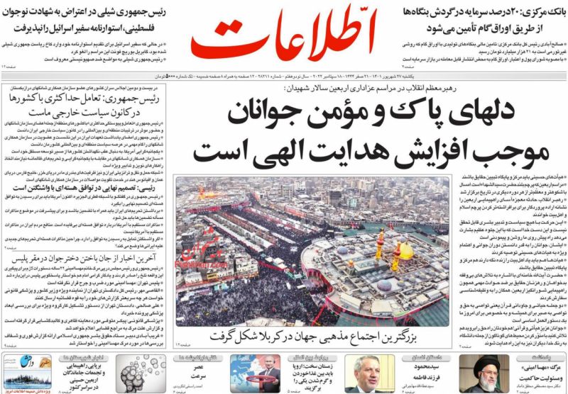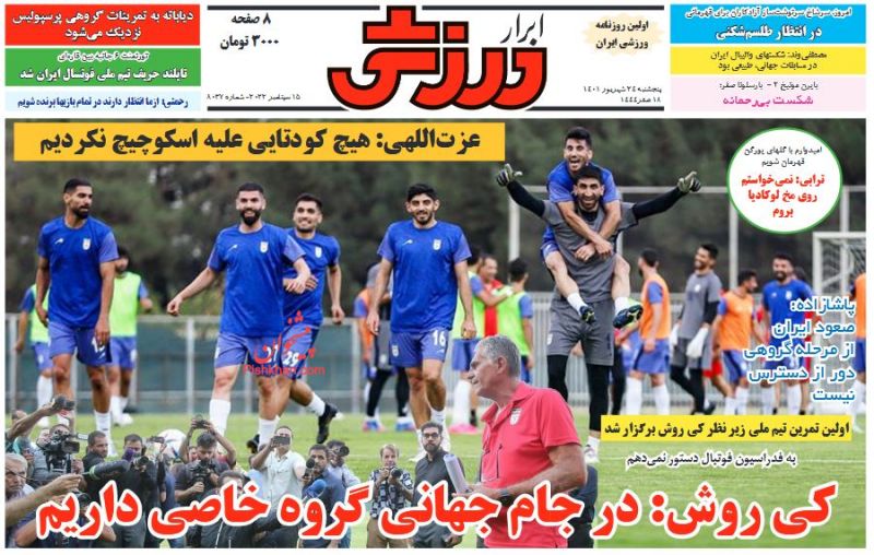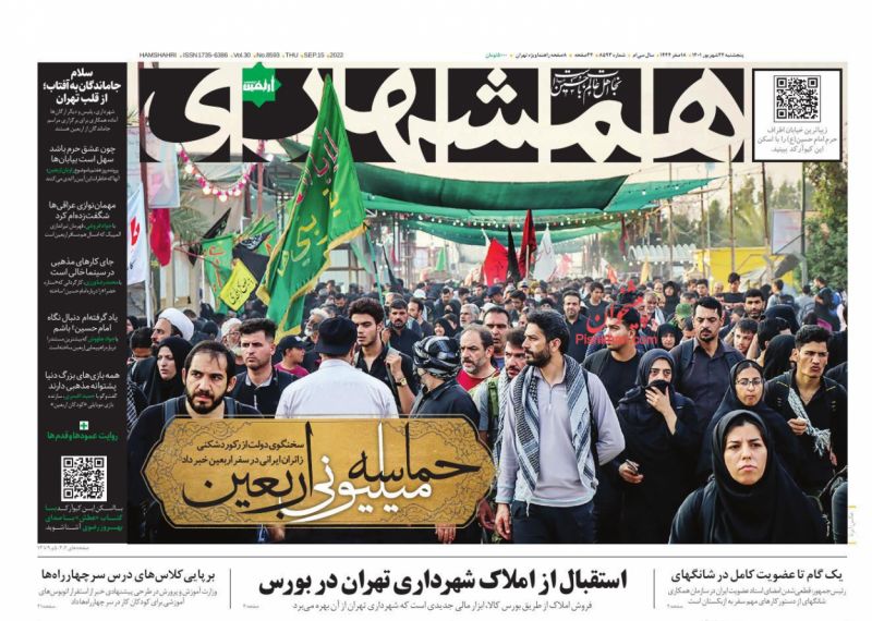 صفحه نخست روزنامه‌های امروز یکشنبه 27شهریور 1401