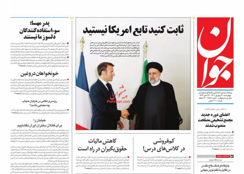 صفحه نخست روزنامه‌های امروز چهارشنبه30 شهریور 1401