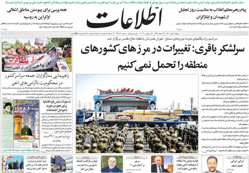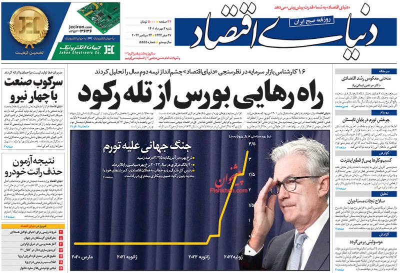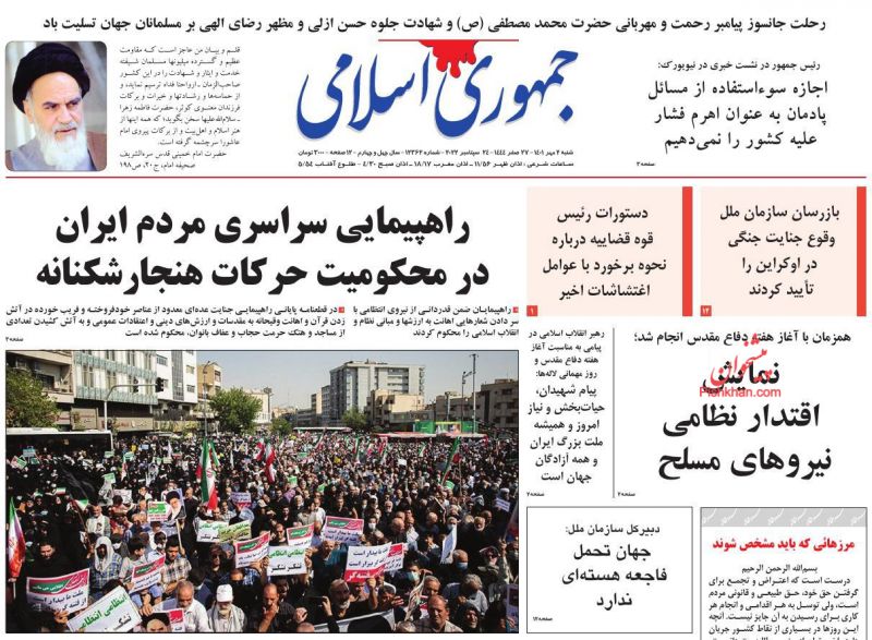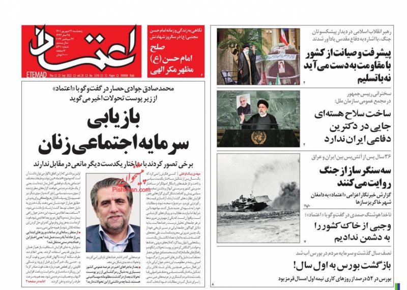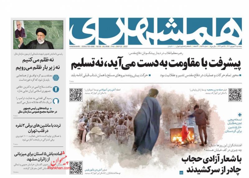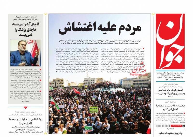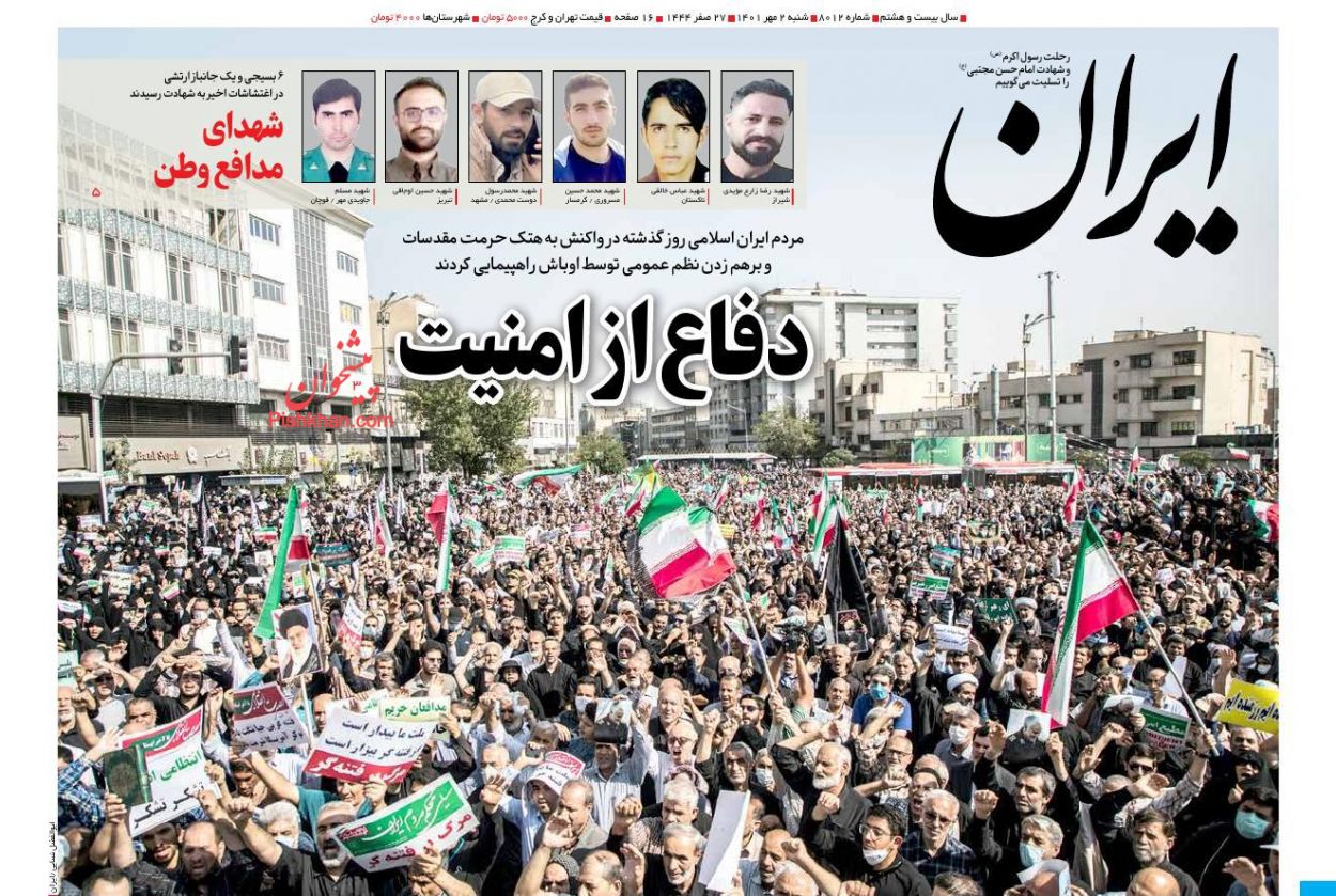صفحه نخست روزنامه‌های امروز شنبه 2 مهر 1401