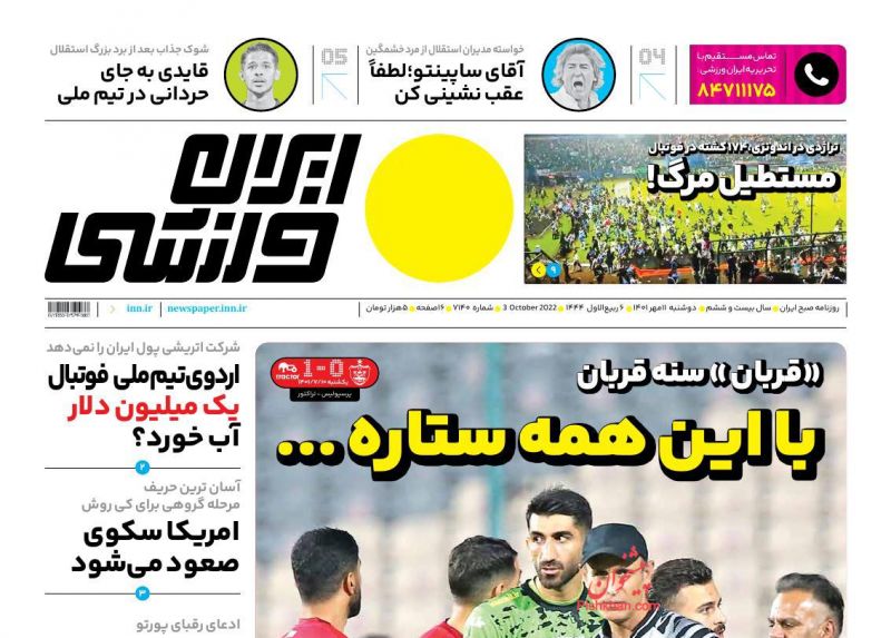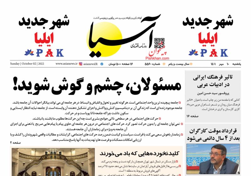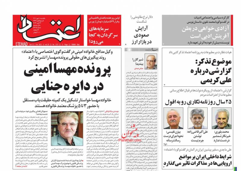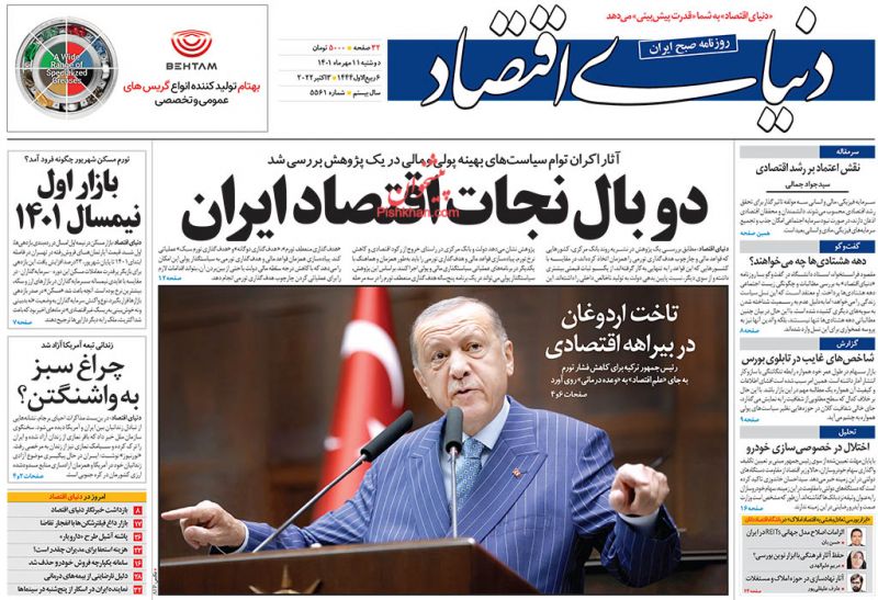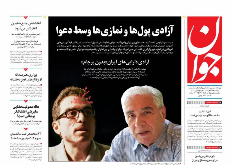 صفحه نخست روزنامه‌های امروز دوشنبه 11 مهر 1401