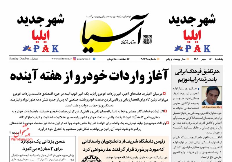 کد: 166423 | 18 مهر 1401 ساعت 06:09 صفحه نخست روزنامههای امروز دوشنبه 18 مهر 1401 صفحه نخست روزنامههای امروز دوشنبه 18 مهر 1401 روزنامه های سراسری مطبوعات کشور روزنامه اشتراک گذاری گزارش خطا × اشتراک گذاری مطلب: صفحه نخست روزنامههای امروز دوشنبه 18 مهر 1401 فیسبوک اینستاگرام تلگرام ایکس (توییتر) ایتا بله روبیکا × گزارش خطا برای گزارش خطا با پست الکترونیکی: ruydadiran[at]gmail.com در ارتباط باشید