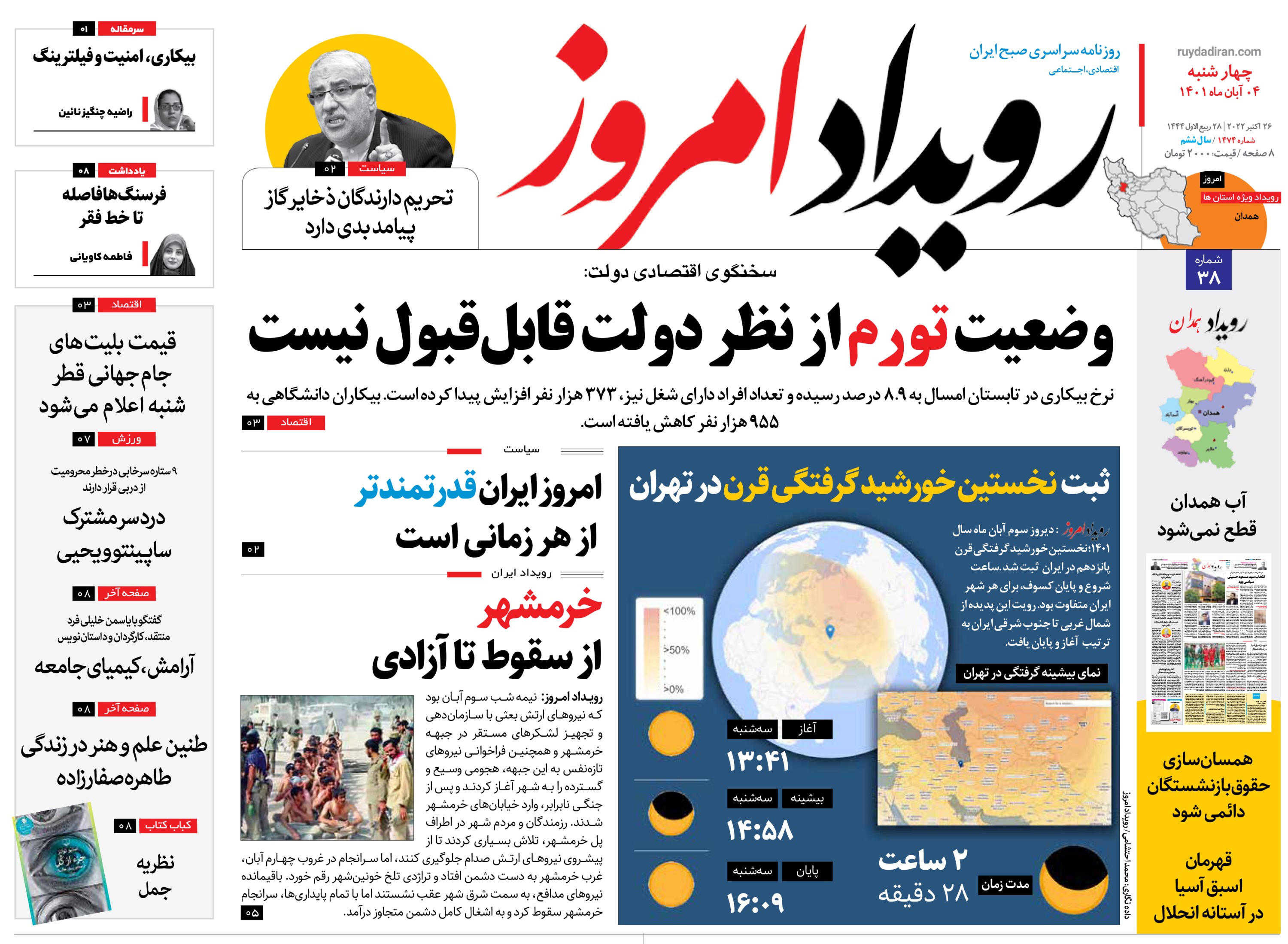 کد: 170276 | 04 آبان 1401 ساعت 03:16 روزنامه رویداد امروز چهارشنبه ۴ آبان ۱۴۰۱ اشتراک گذاری گزارش خطا × اشتراک گذاری مطلب: روزنامه رویداد امروز چهارشنبه ۴ آبان ۱۴۰۱ فیسبوک اینستاگرام تلگرام ایکس (توییتر) ایتا بله روبیکا × گزارش خطا برای گزارش خطا با پست الکترونیکی: ruydadiran[at]gmail.com در ارتباط باشید