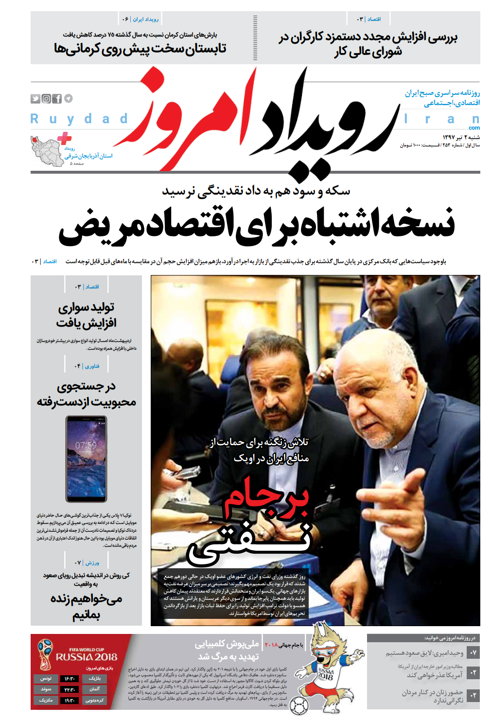 روزنامه رویداد امروز شنبه ۲ تیر ۹۷
