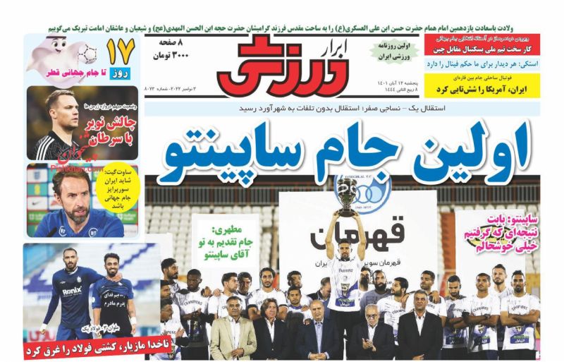 کد: 171919 | 12 آبان 1401 ساعت 06:36 صفحه نخست روزنامههای امروز پنجشنبه 12 آبان 1401 صفحه نخست روزنامههای امروز پنجشنبه 12 آبان 1401 روزنامه های سراسری مطبوعات کشور روزنامه اشتراک گذاری گزارش خطا × اشتراک گذاری مطلب: صفحه نخست روزنامههای امروز پنجشنبه 12 آبان 1401 فیسبوک اینستاگرام تلگرام ایکس (توییتر) ایتا بله روبیکا × گزارش خطا برای گزارش خطا با پست الکترونیکی: ruydadiran[at]gmail.com در ارتباط باشید