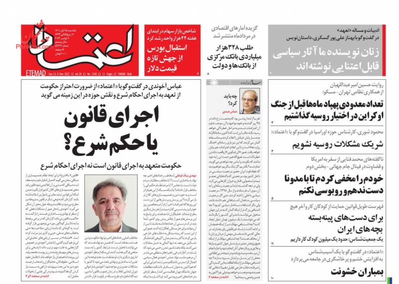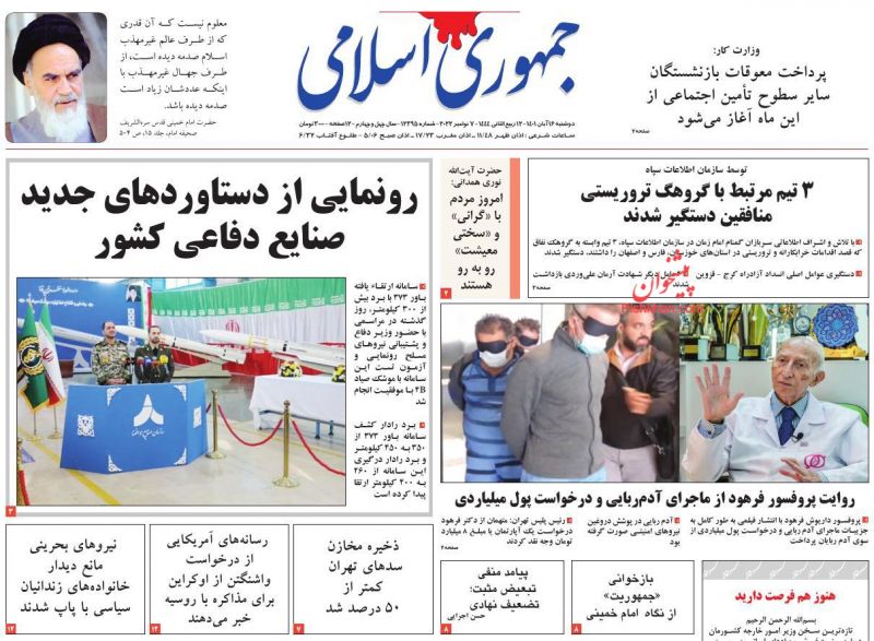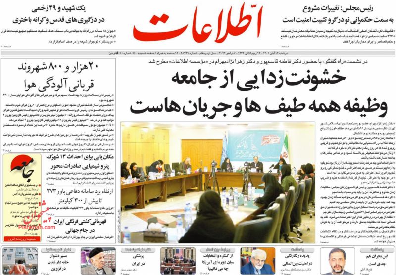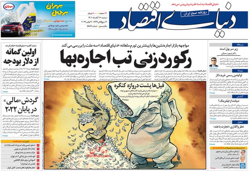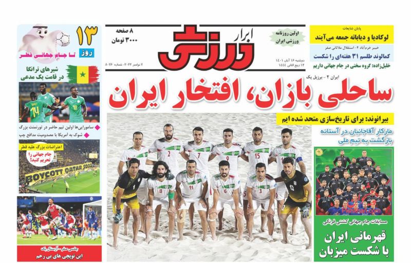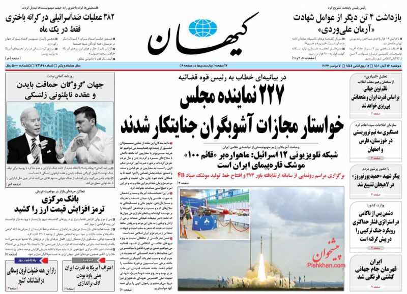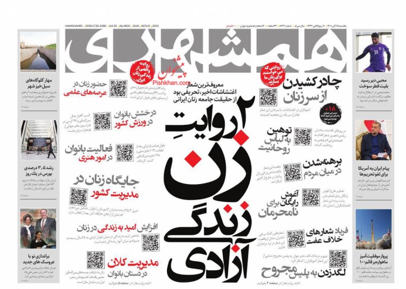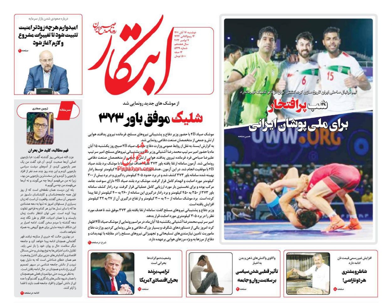 صفحه نخست روزنامه‌های امروز دوشنبه 16 آبان 1401