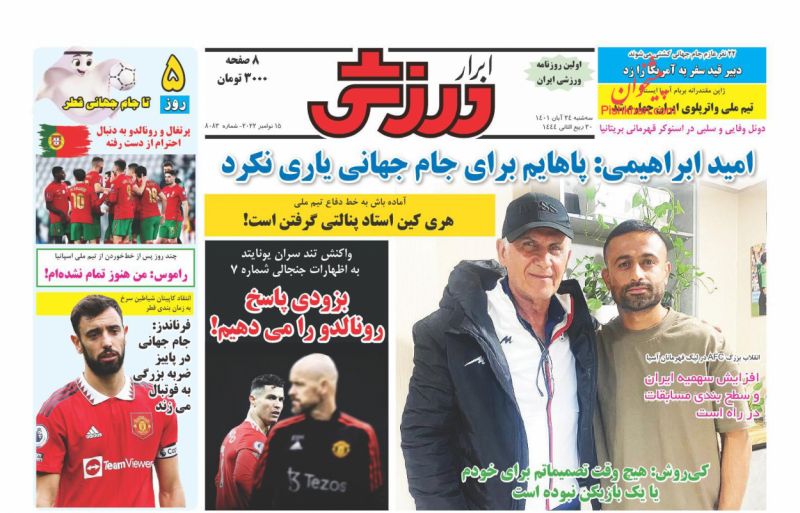 کد: 174657 | 24 آبان 1401 ساعت 06:27 صفحه نخست روزنامههای امروز سه شنبه 24 آبان 1401 صفحه نخست روزنامههای امروز سه شنبه 24 آبان 1401 روزنامه های سراسری مطبوعات کشور روزنامه اشتراک گذاری گزارش خطا × اشتراک گذاری مطلب: صفحه نخست روزنامههای امروز سه شنبه 24 آبان 1401 فیسبوک اینستاگرام تلگرام ایکس (توییتر) ایتا بله روبیکا × گزارش خطا برای گزارش خطا با پست الکترونیکی: ruydadiran[at]gmail.com در ارتباط باشید